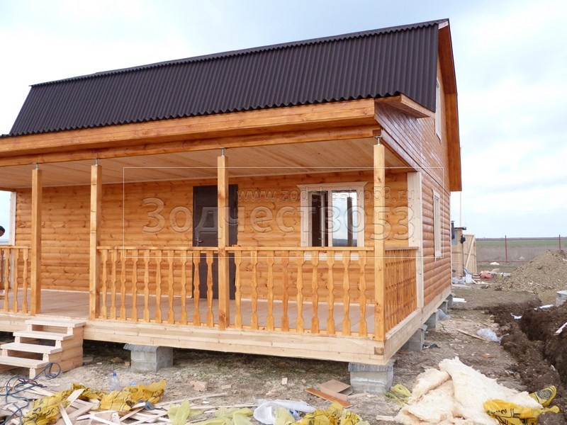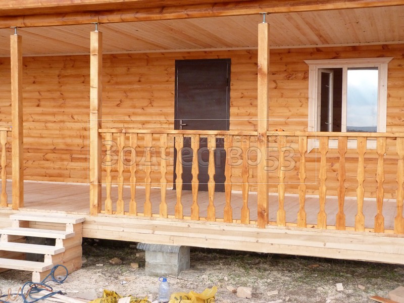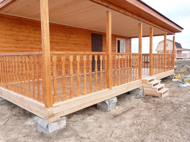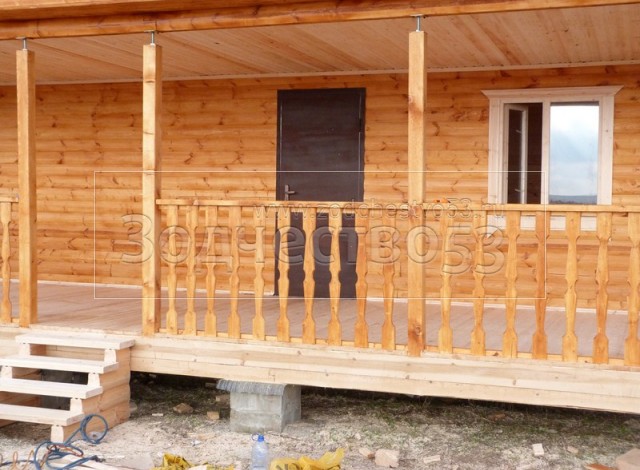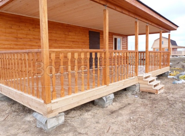 - Терраса открытая с резными балясинами с установкой усадочных болтов.