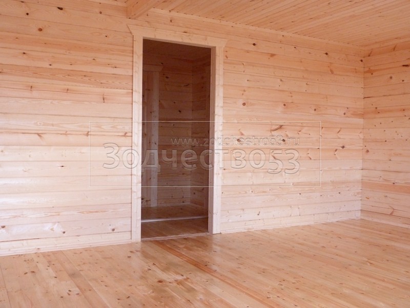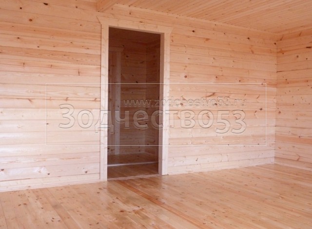 - Стены: профилированный брус 100×150, 17 венцов, высотой 2.3 м.