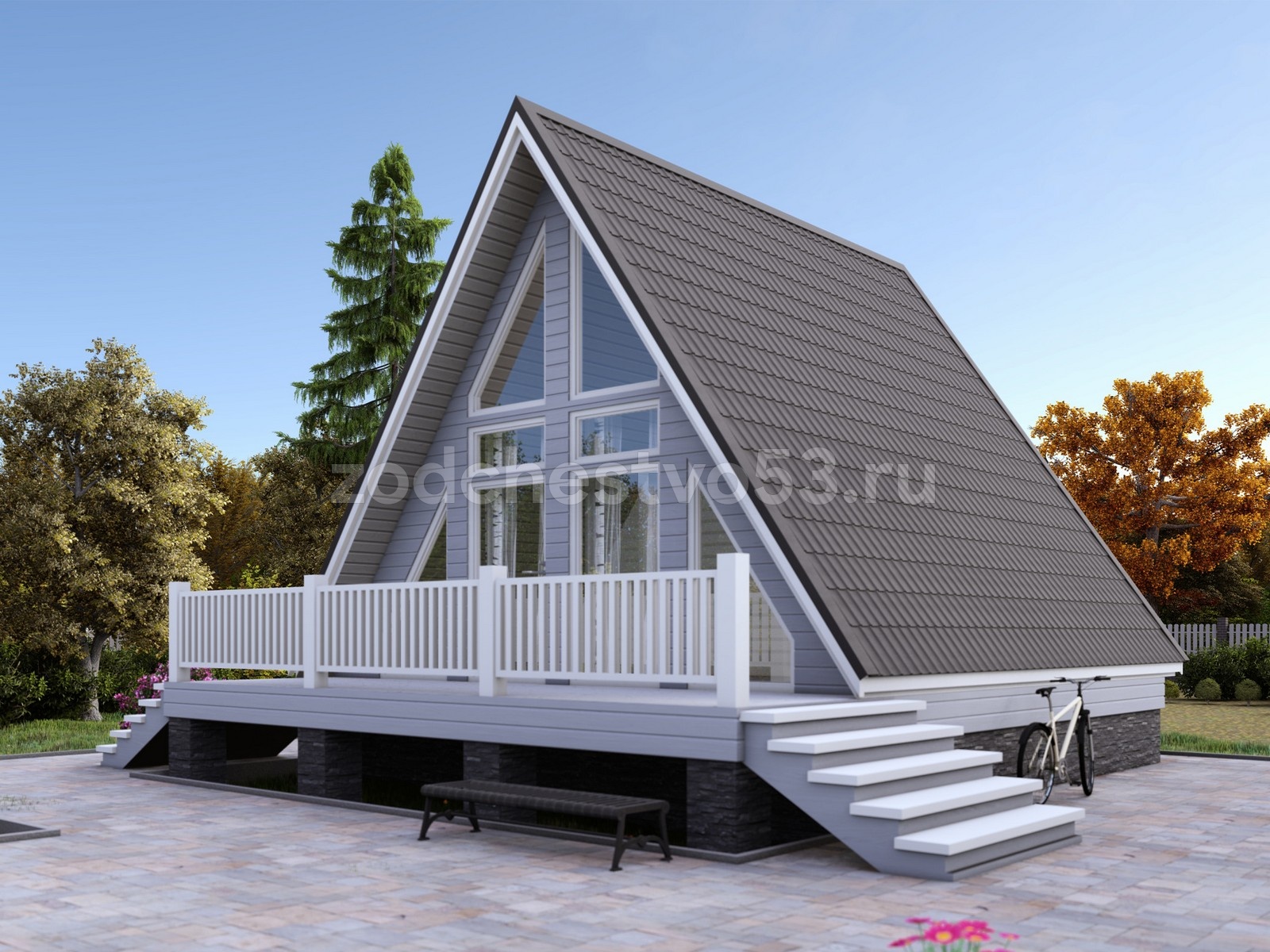 Фронтоны 6-7 м высотой( согласно проекту) Обшиваются сухой имитацией бруса 16×140