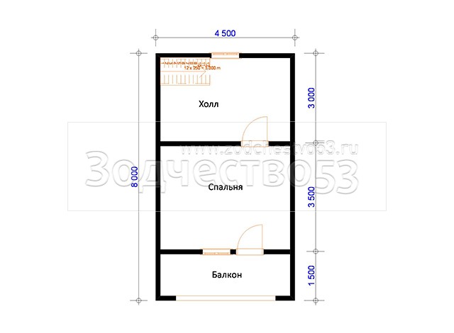 • С перилами, с точёными балясинами и стартовыми столбами. Одномаршевая и двухмаршевая (по проекту)