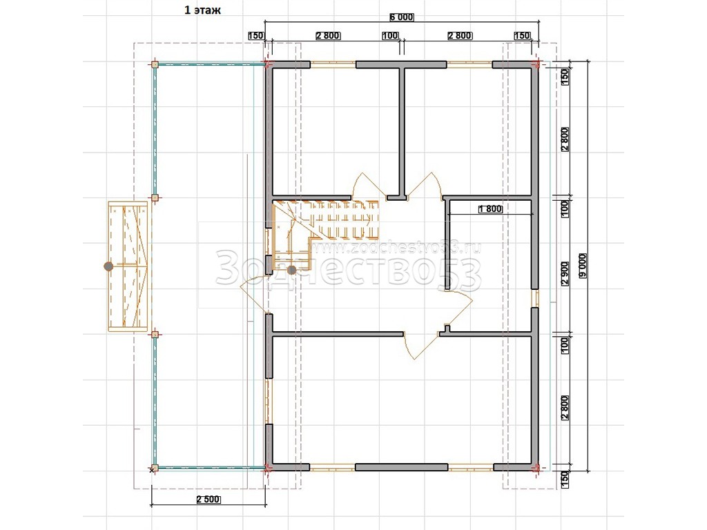 • С перилами, с точёными балясинами и стартовыми столбами. Одномаршевая и двухмаршевая (по проекту)