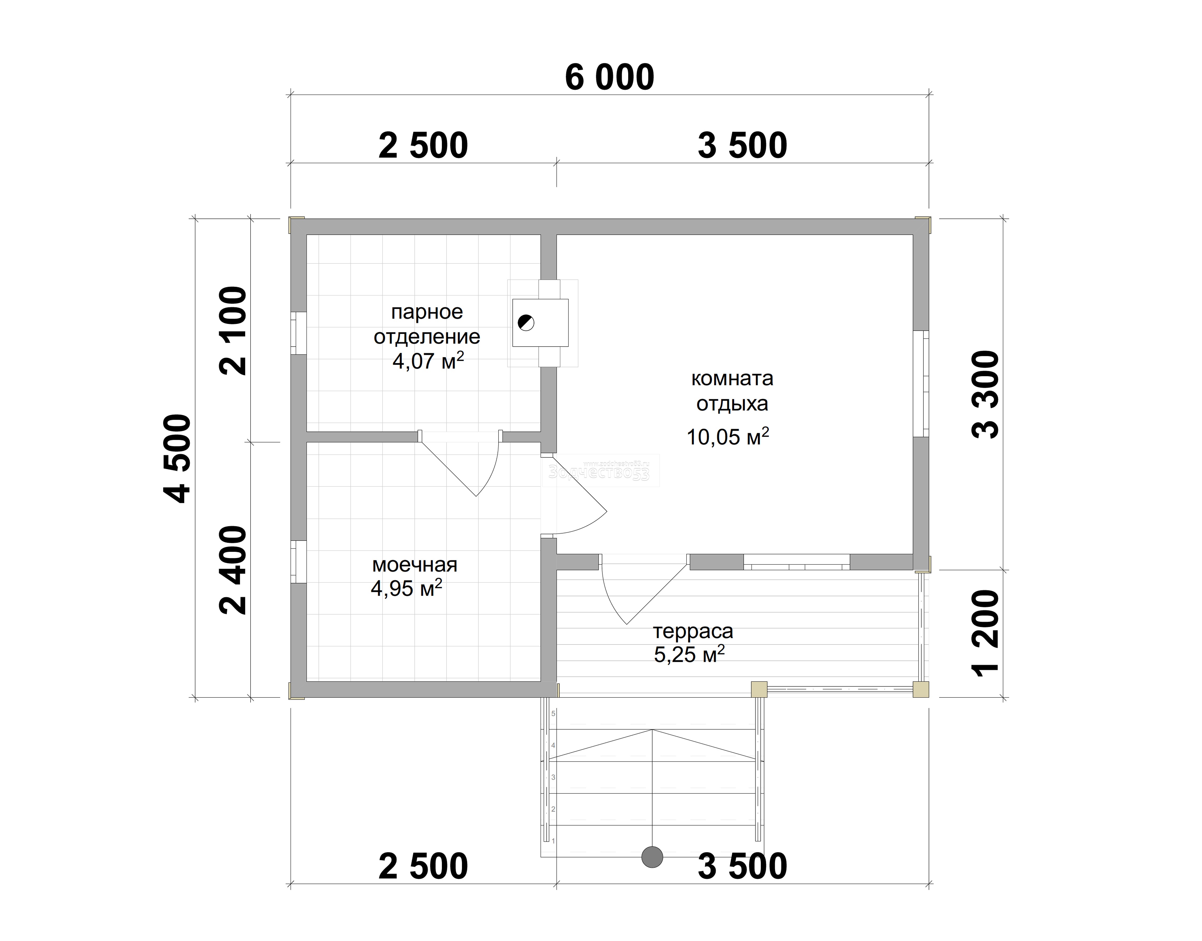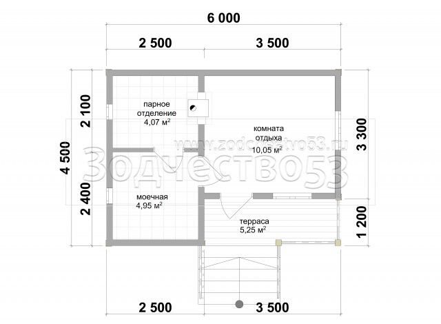 Баня 19. Баня из бруса 6х4,5 м.