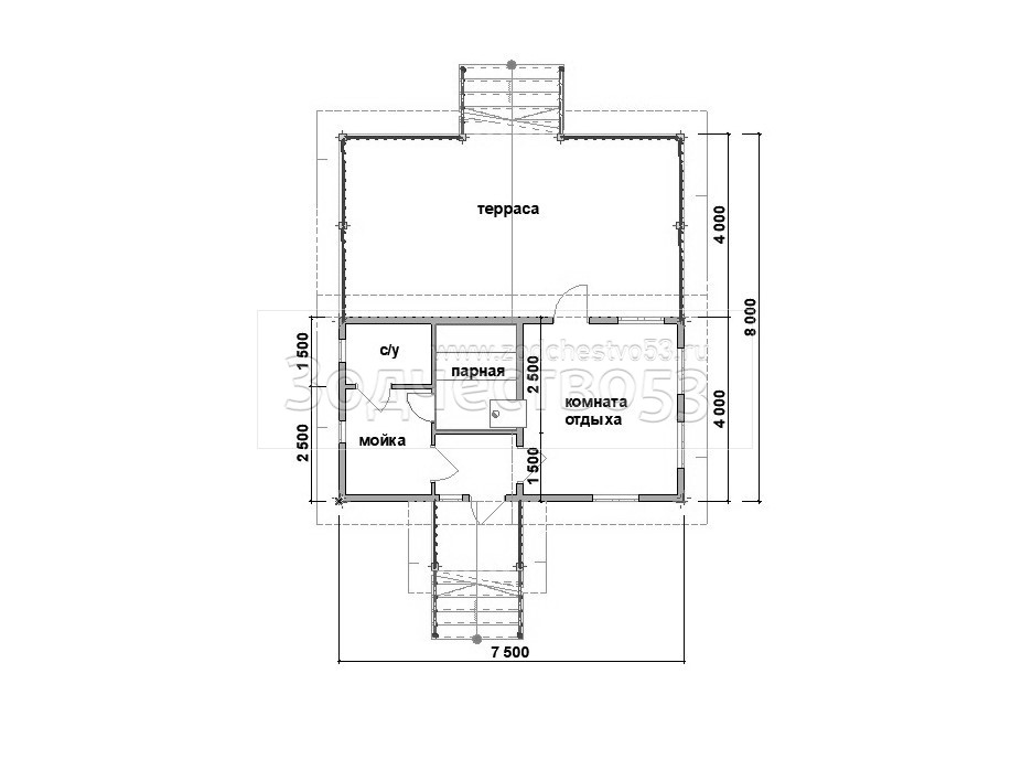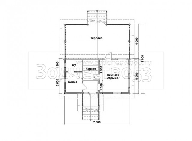 Моечная и комната отдыха Перегородки из проф. бруса (прямой)