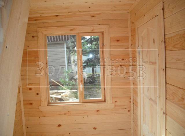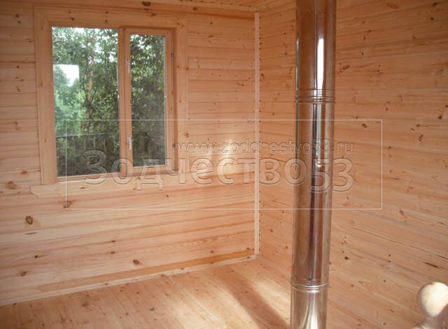 Баня из профилированного бруса 150×150 по проекту «Мимоза», и бытовка 3×5 м. Построена: Ленинградская область, Волховский район