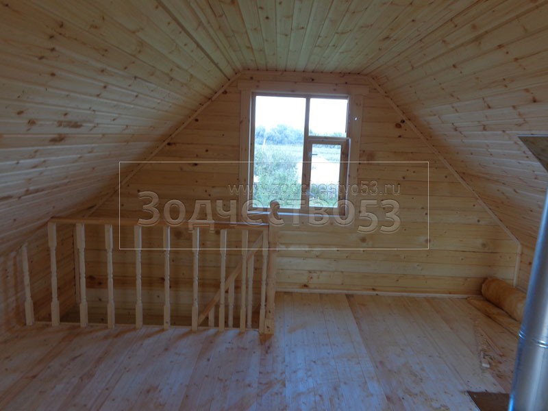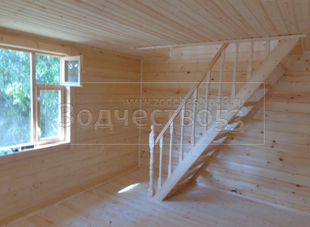 - Установлена одномаршевая лестница с резными балясинами и перилами.