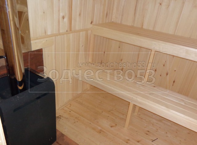 - В парной установлена печь Ермак 16, + все комплектующие, с обложкой из кирпича, с сэндвич трубами через крышу.
