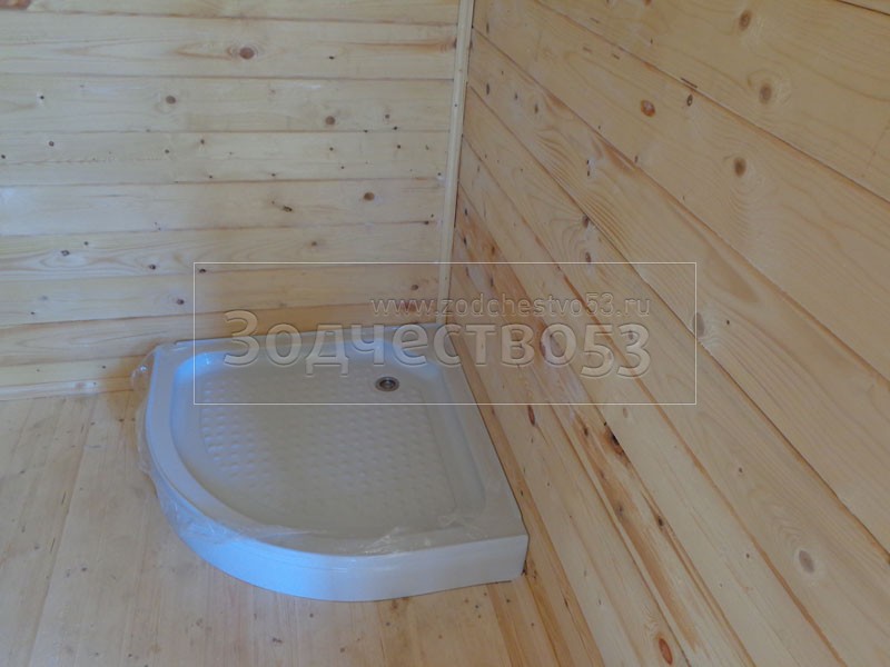 - В душевой установлен поддон и бак под воду на 40 литров в подарок!