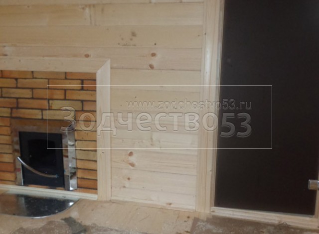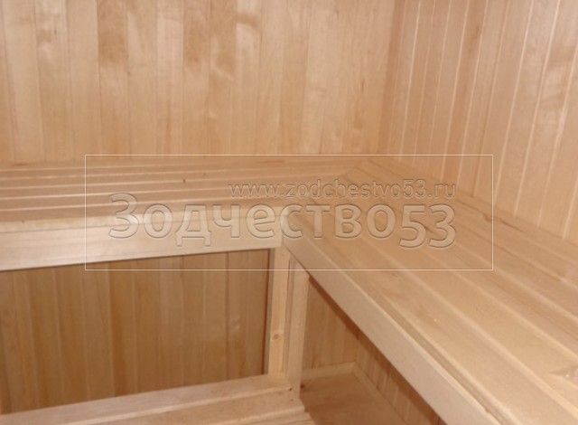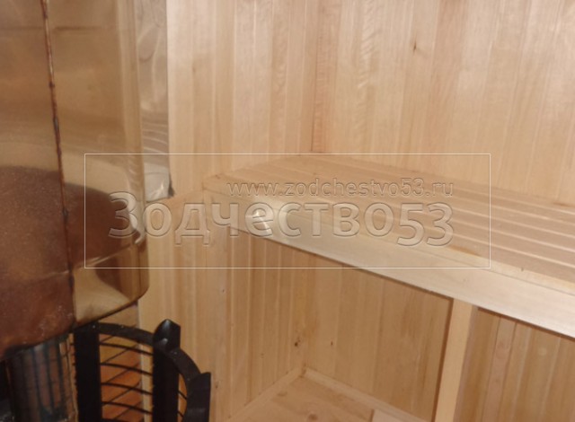 - Парная обшита осиновой вагонкой с проложкой из фольги, установлены двухярусные полки.