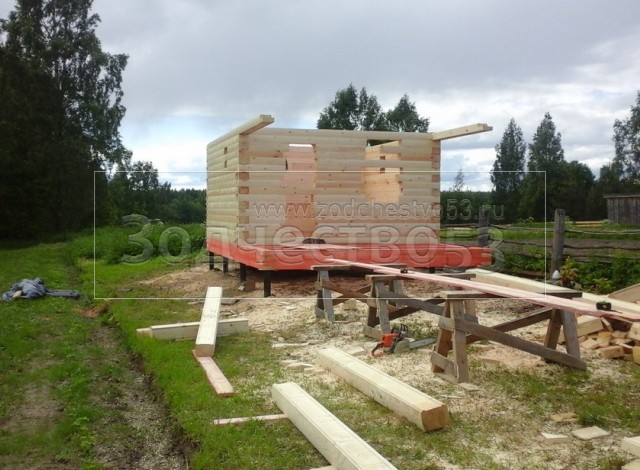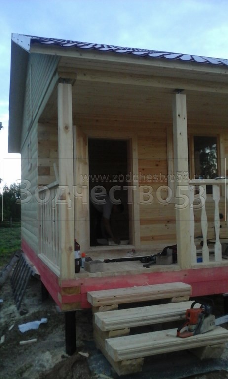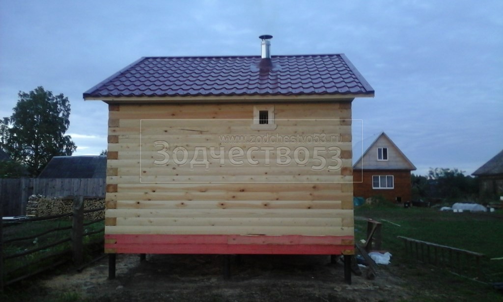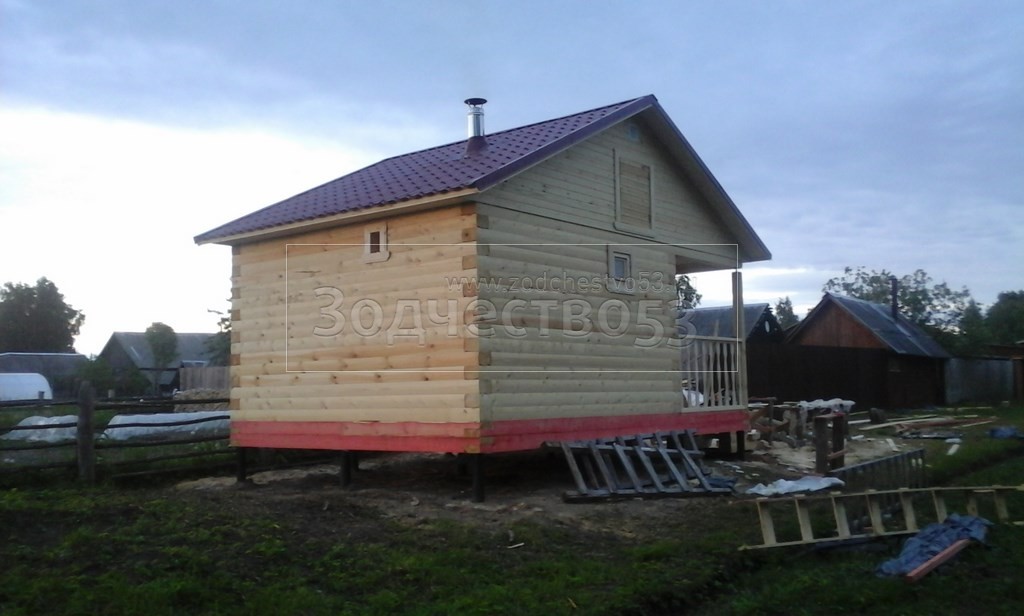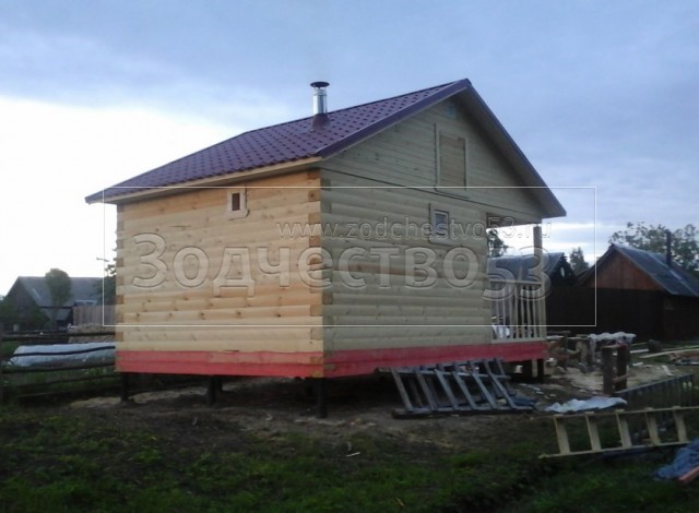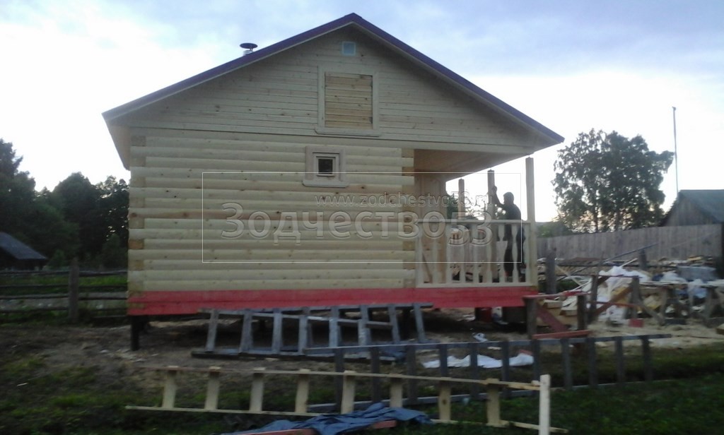 Баня общими размерами 4×6 (4×4 из профилированного бруса 200×150 и открытая терраса 2×4) построена в Тверской области, Весьегонский р-н, д. Огнишино.