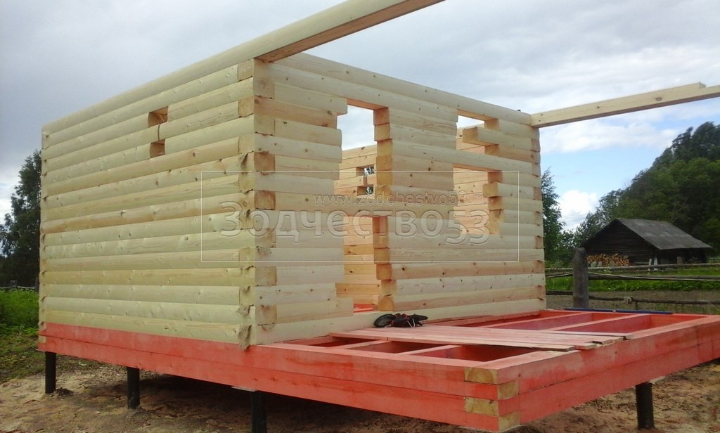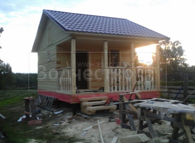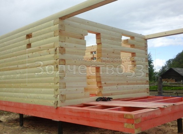 - стены профилированный брус 200×150 (овал) 16 рядов, сборка на гвозди