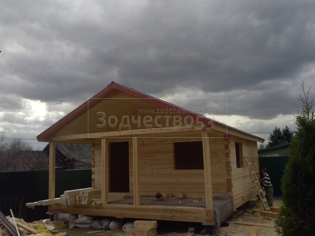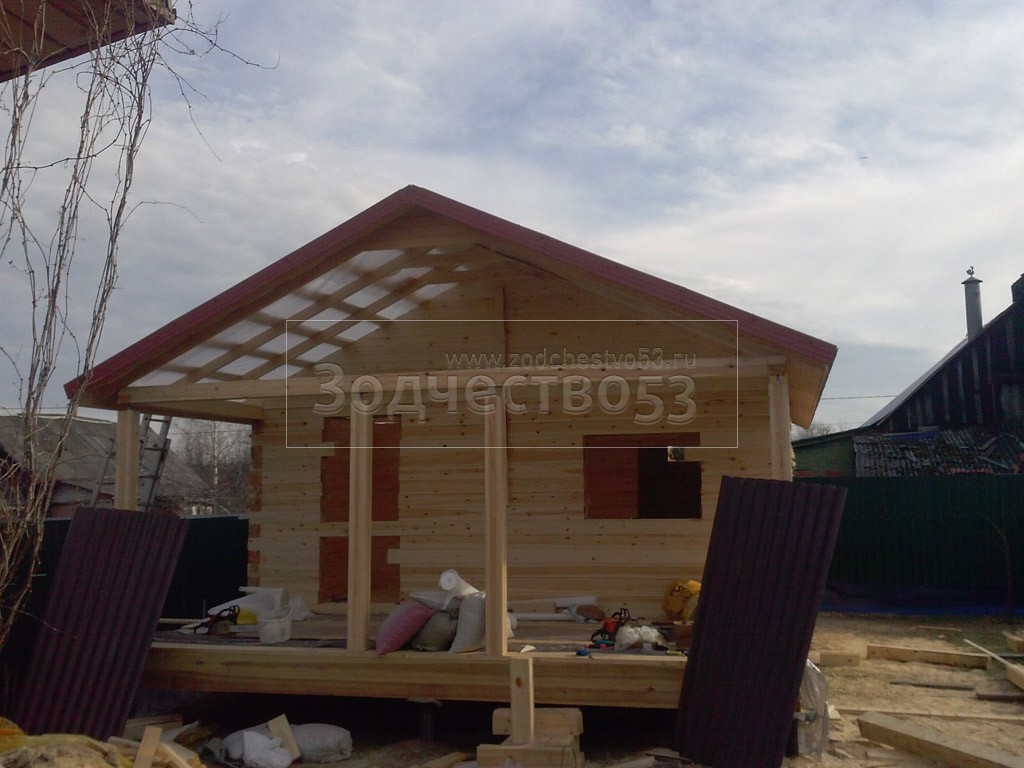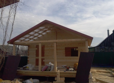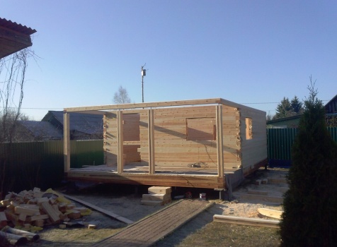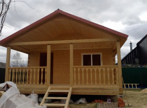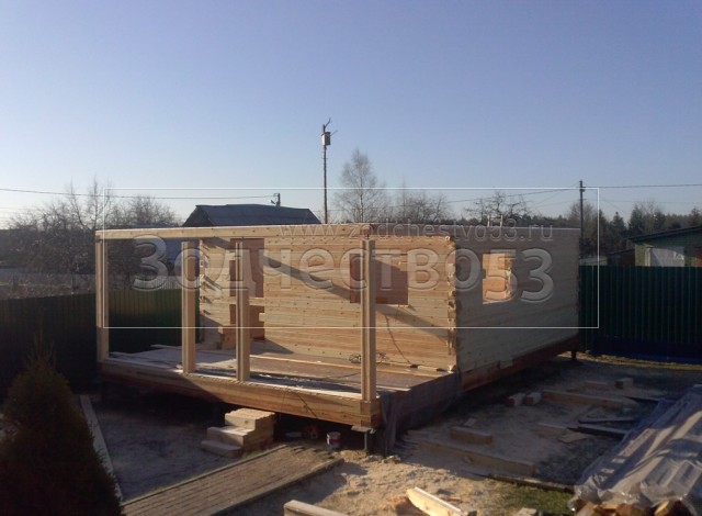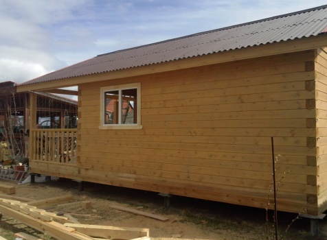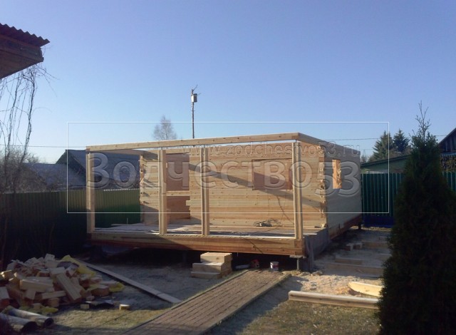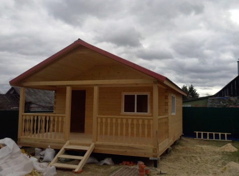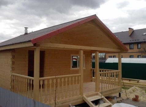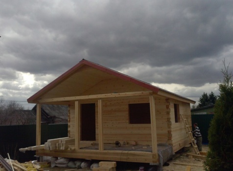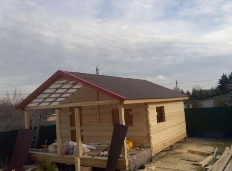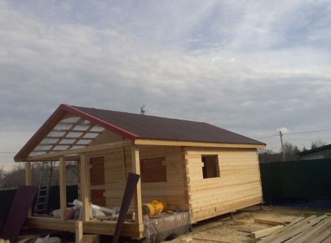 Одноэтажная баня общими размерами 5,5х7,8 (5,5х5,5 из профилированного бруса 150х150 и 2,3х5,5 открытая терраса). Место строительства: Московская область, д. Юдино