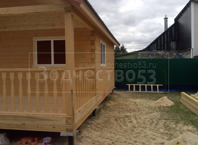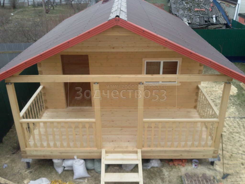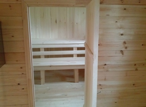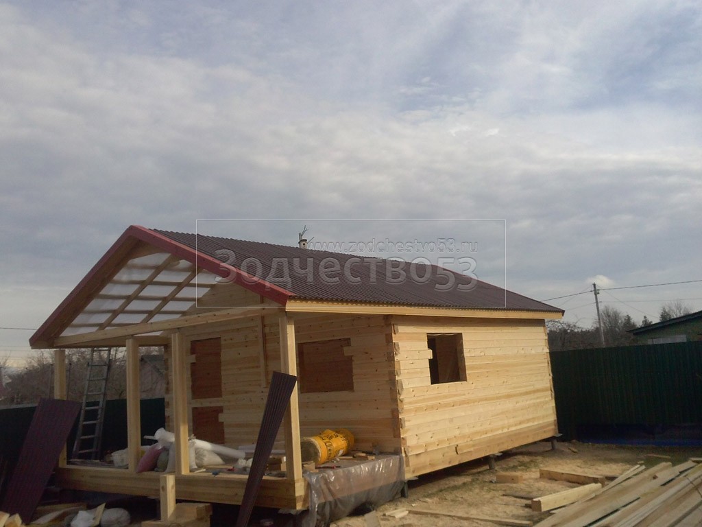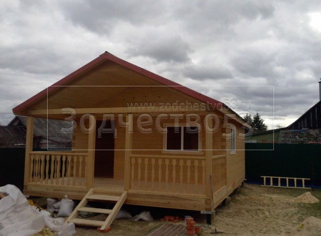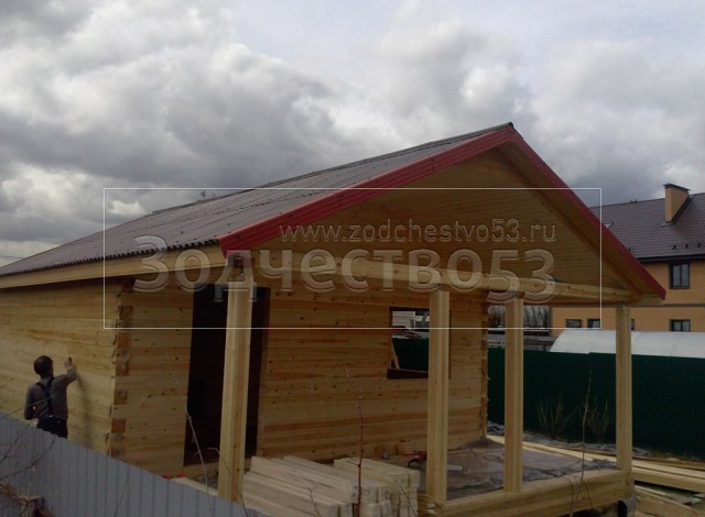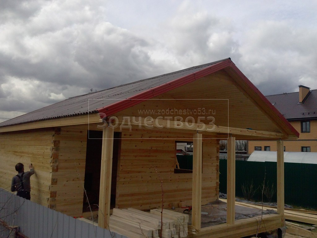 Одноэтажная баня общими размерами 5,5х7,8 (5,5х5,5 из профилированного бруса 150х150 и 2,3х5,5 открытая терраса). Место строительства: Московская область, д. Юдино