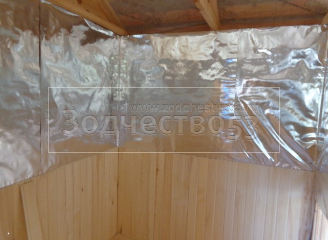 - Крыша бани покрыта металочерепицей. Цвет - зелёный.