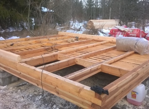 Черновой пол, двойная обвязка и лаги обработаны огнебиозащитой.