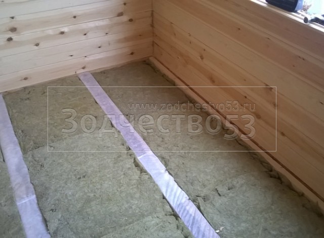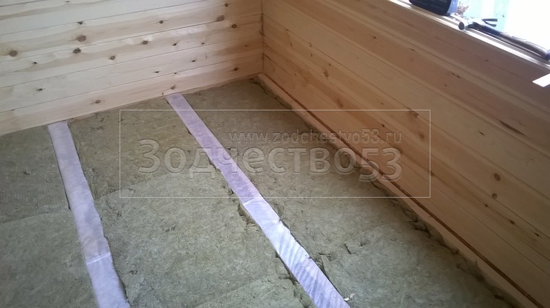 - Чистовой пол 28 мм., шпунтованная доска с утеплением в 100 мм. (Роквул) с проложкой парогидроизоляции класс В.