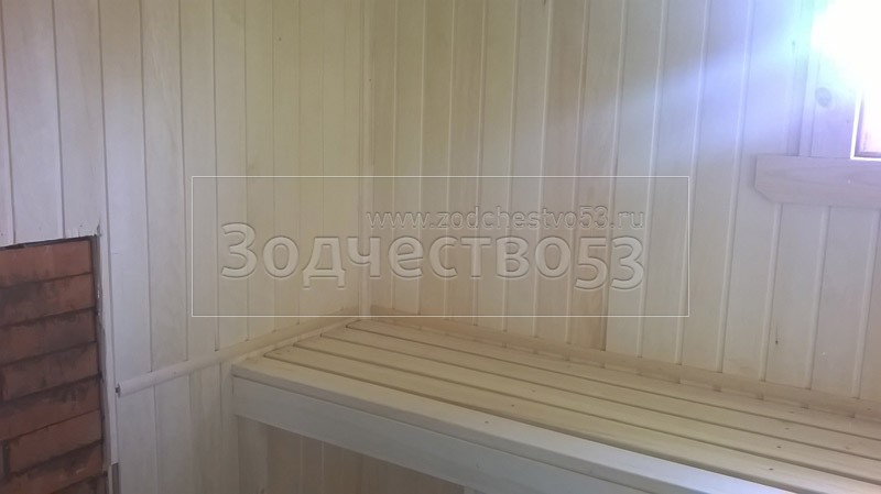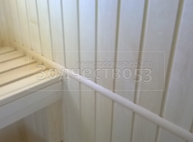 - Потолки подшиты вагонкой 14мм (хвоя) в комнате отдыха и душевой (стены и потолок) с утеплением в 100мм (Роквул) в парной потолок и стены обшиты осиновой вагонкой с утеплением в 100мм (Роквул).