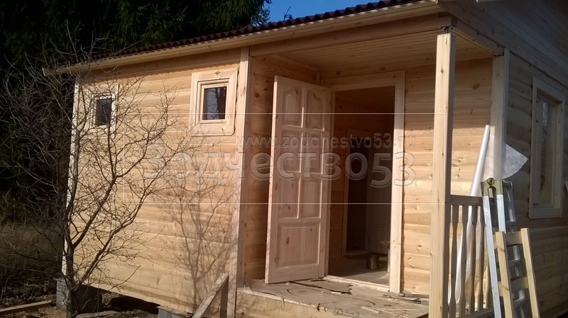 - Фронтоны: каркасно-щитовой высотой 0.8м обшиты вагонкой класс В 14мм.