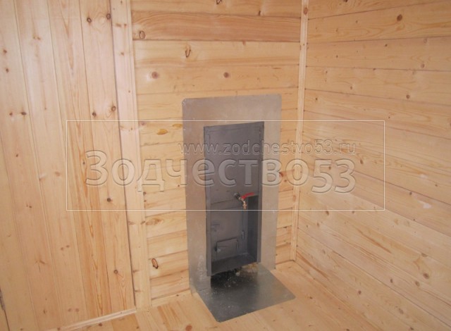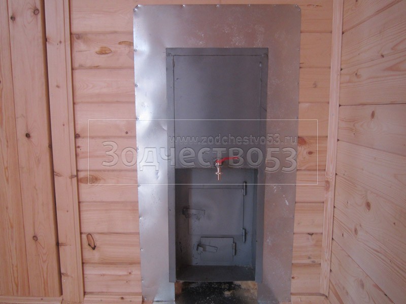 • Печь — эконом, с разделкой из оцинкованного листа, с проложкой асбеста, с выходом трубы через стену.