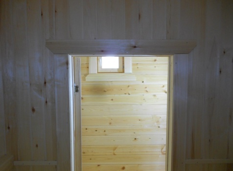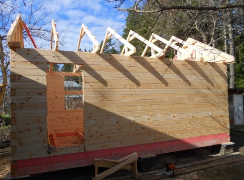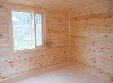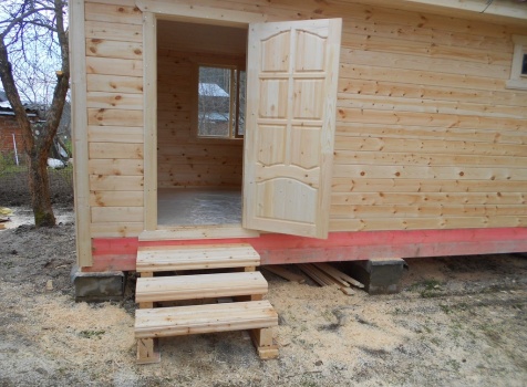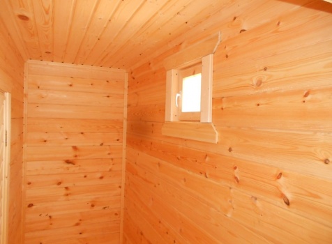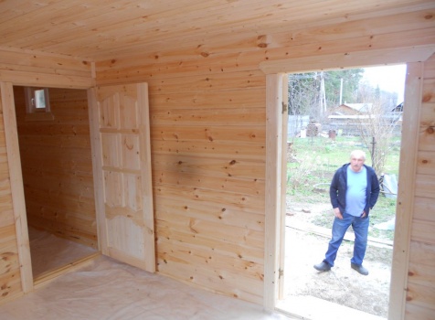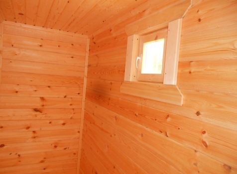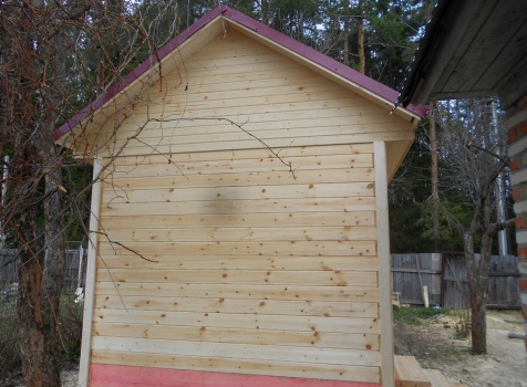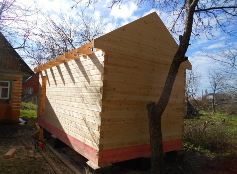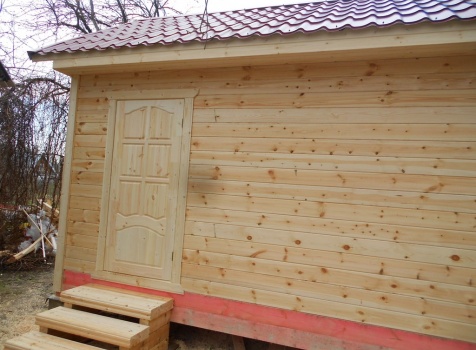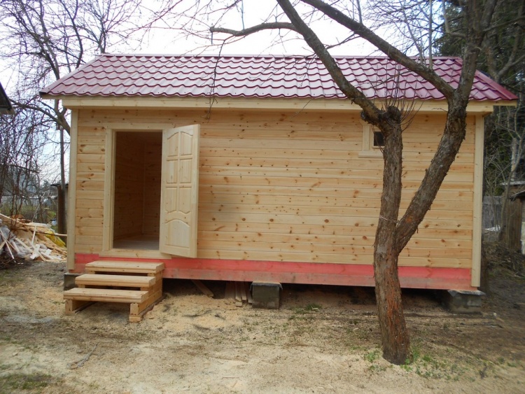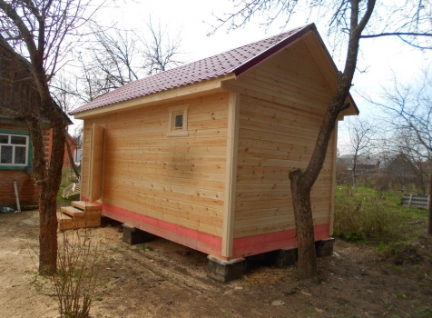Баня 6×3 из профилированного бруса 100×150 под двухскатной крышей построена в Московской области, Щелковский р-н, д. Козино.