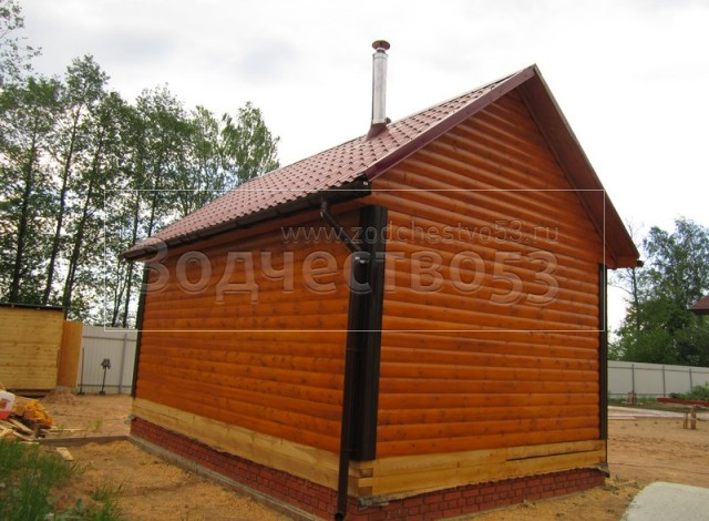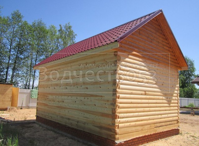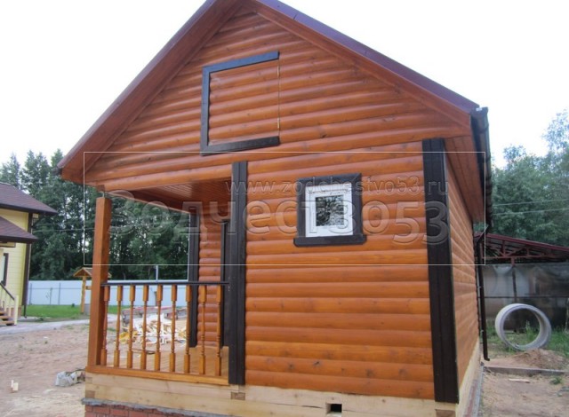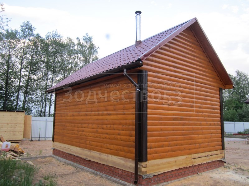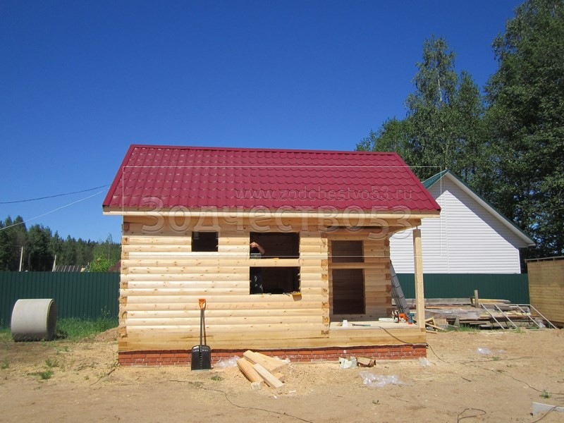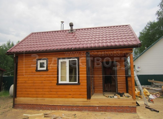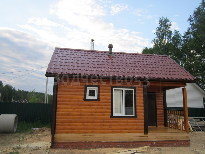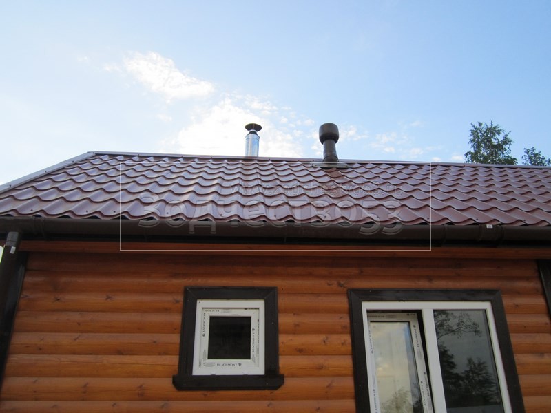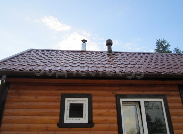 1.2-1.5 обшит блокхаусом в подарок! - Покрытие крыши — металочерепица (бордо).