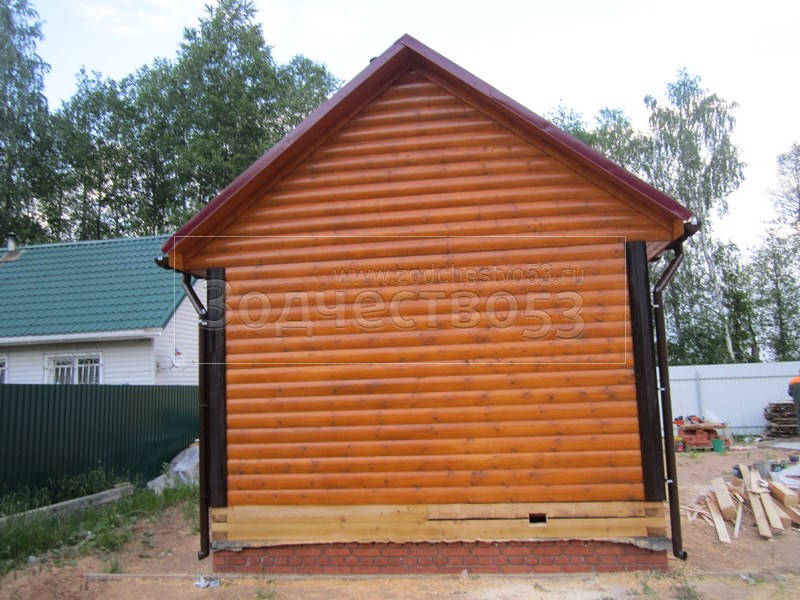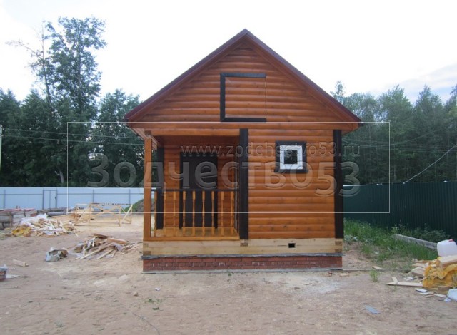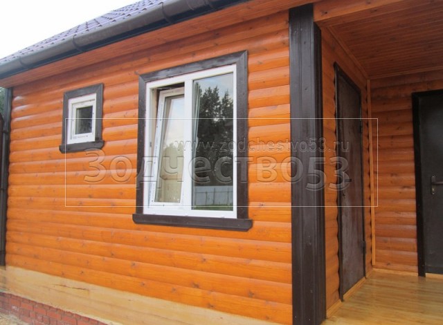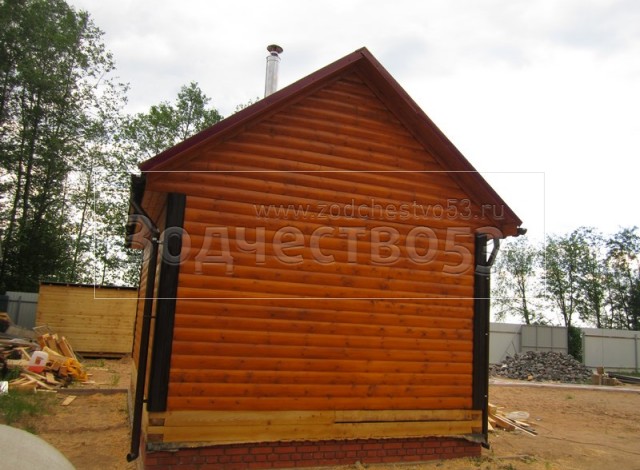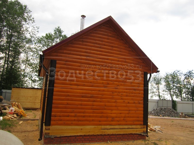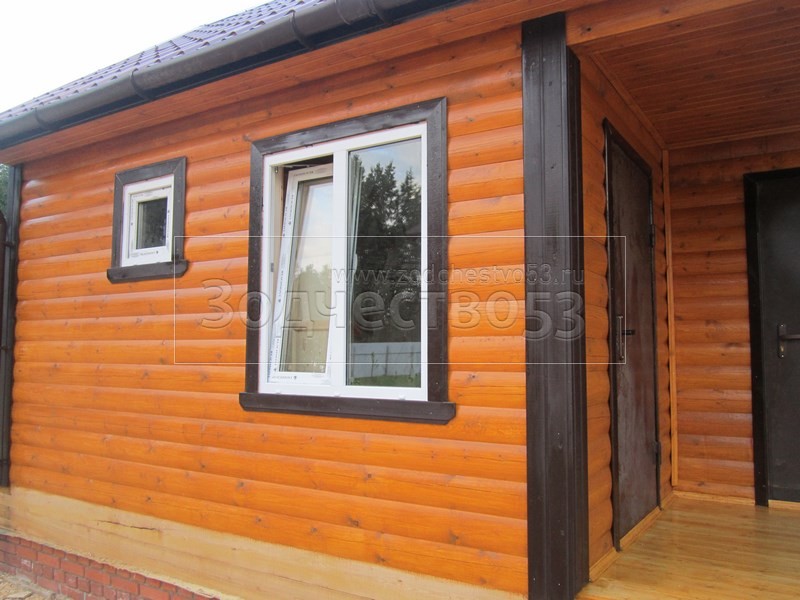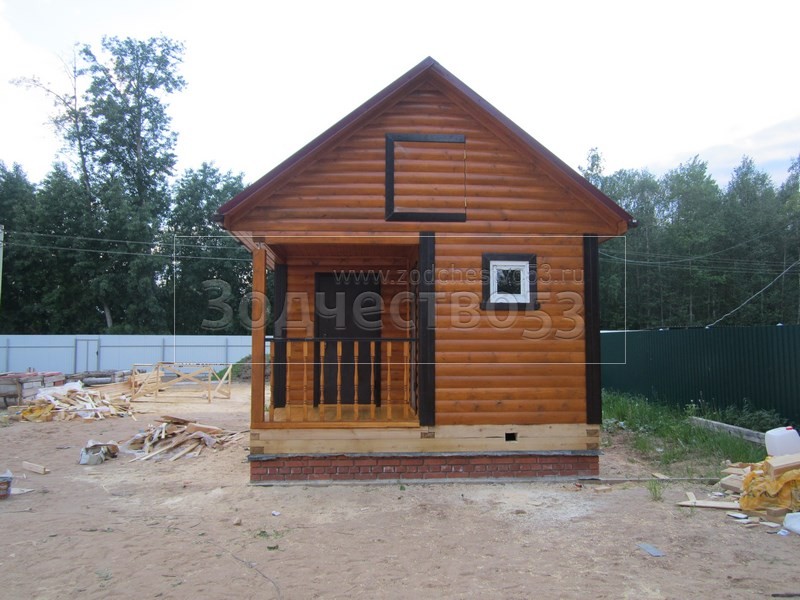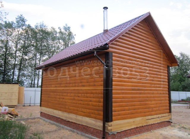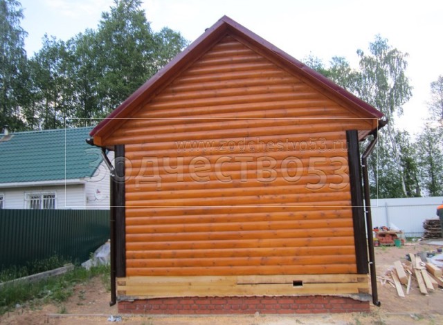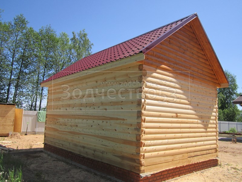 1.2-1.5 обшит блокхаусом в подарок! - Покрытие крыши — металочерепица (бордо).