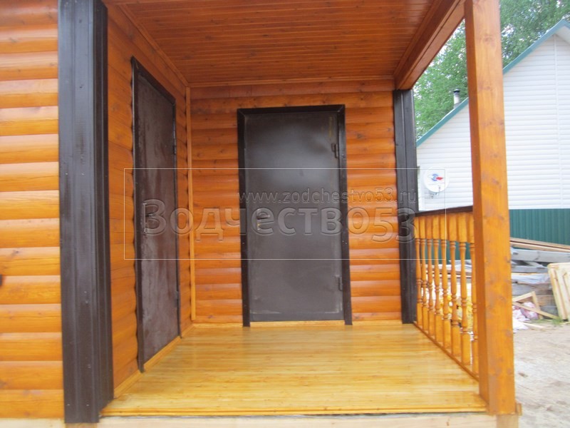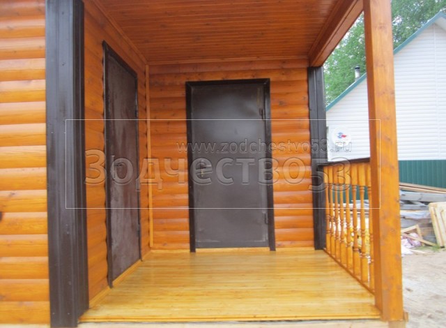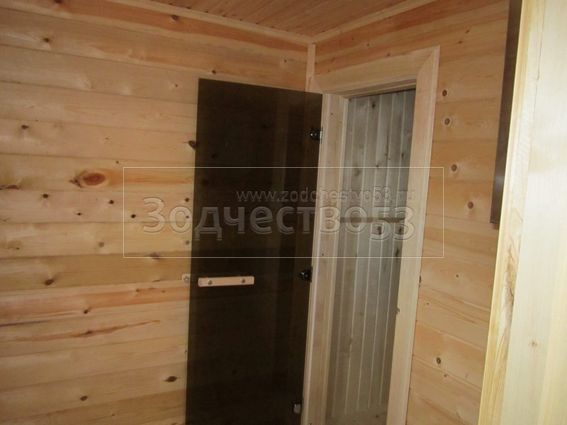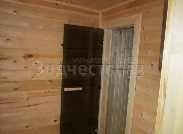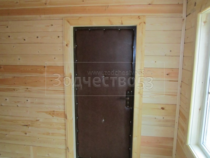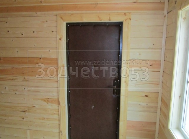 - Двери: 2 шт. — металлические (Россия), 1 шт. — филенчатая и 1 шт. — банная (клиновая).