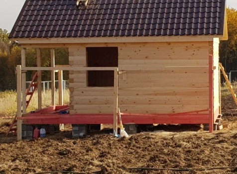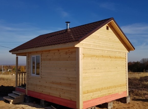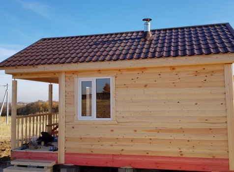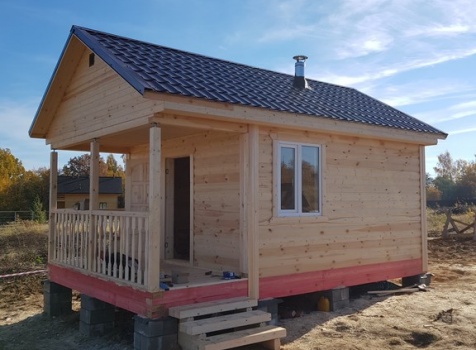 Одноэтажная баня, общими размерами 6.0*4.0 (4.5*4.0 из профилированного бруса 150*150 и 4.0*1.5 открытая терраса под общей двухскатной крышей).