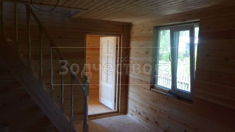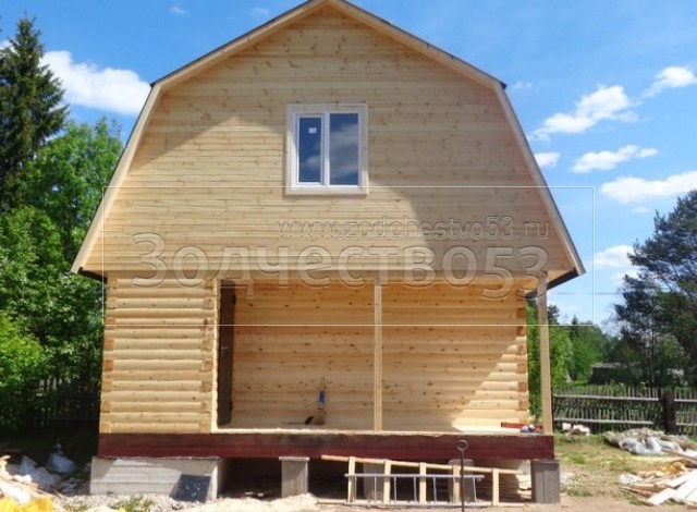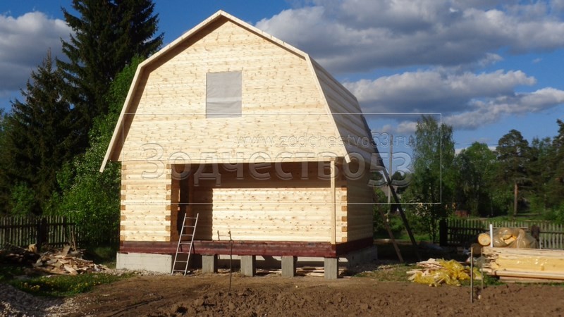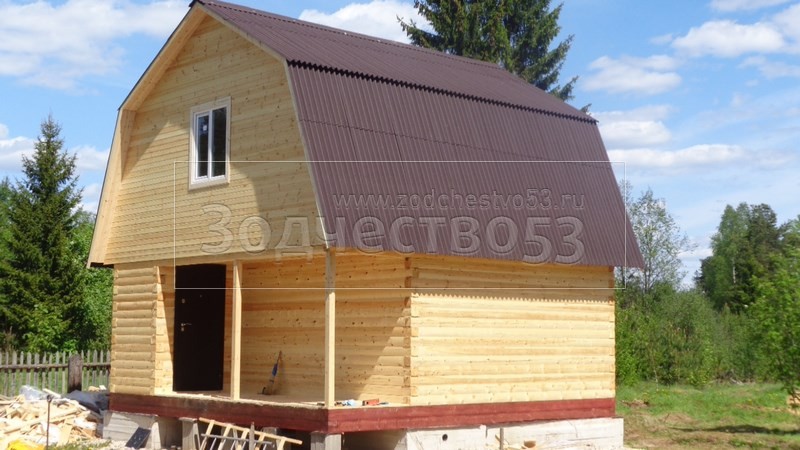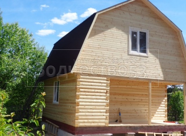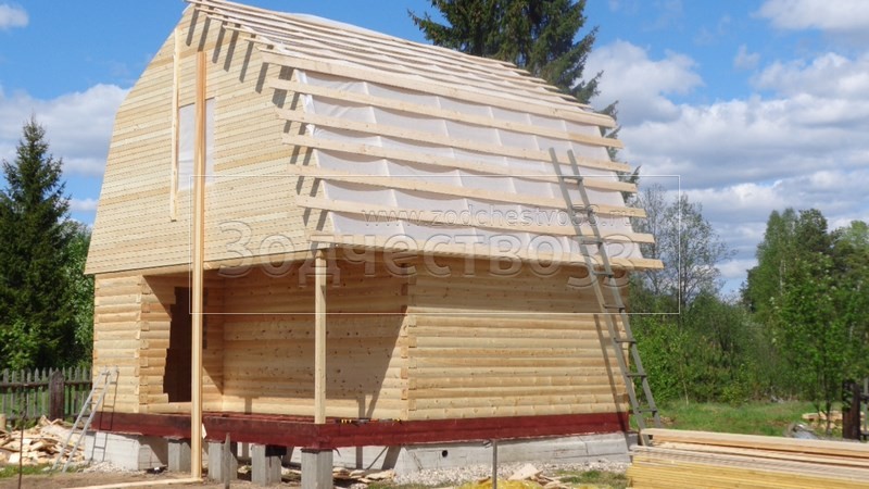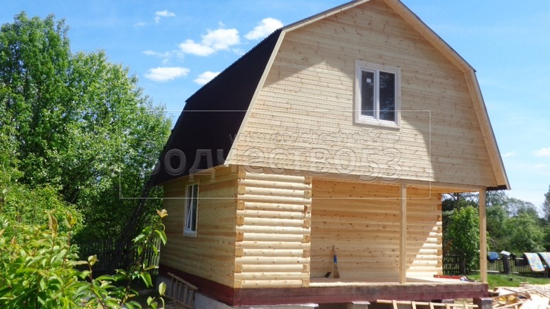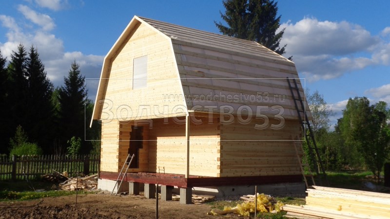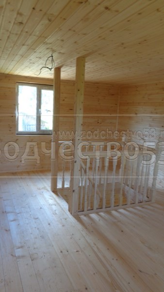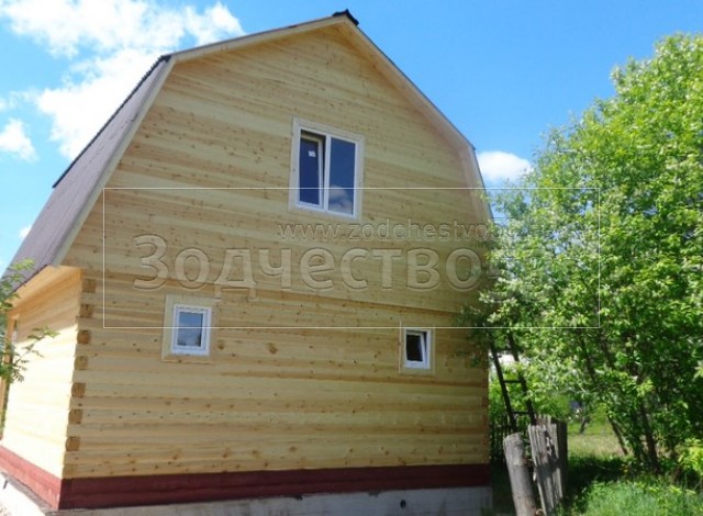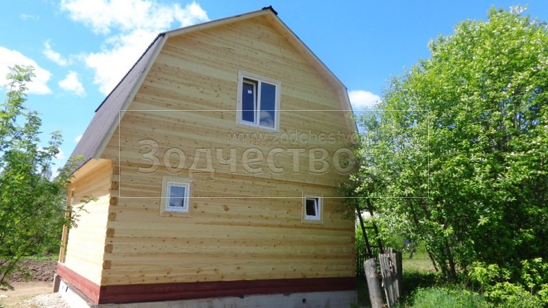- Второй этаж размерами 4.5×6.0 каркасно-щитовой, обшит вагонкой класса «В» 16 мм., с утеплением в 100 мм. (в подарок) с проложкой парогидроизоляции.
