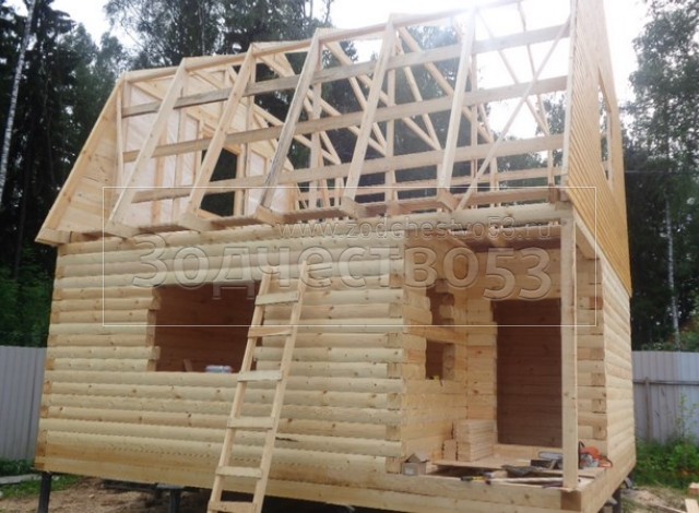 Баня 6×6 из профилированного бруса 150×150 под ломанной крышей. Объект построен: Московская область, Дмитровский район, посёлок Некрасовский.