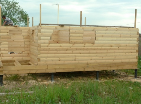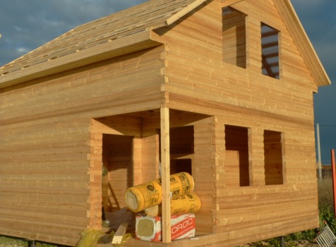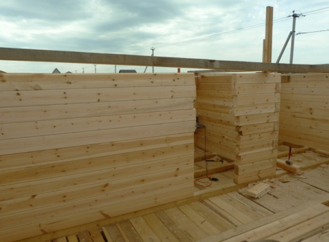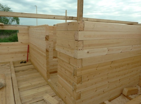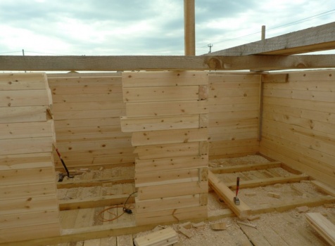 • Сборка на гвозди в тёплый угол с проложкой джутового полотна (размер по полу 6×6) с выгородкой комнат по высоте 2.3м.
