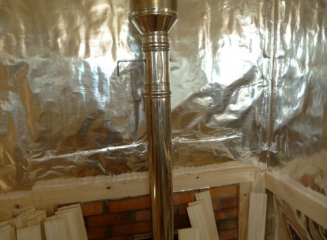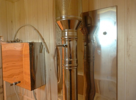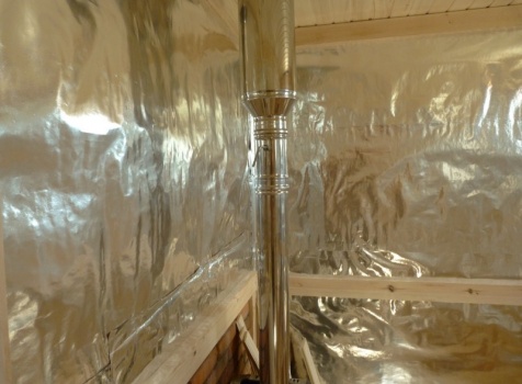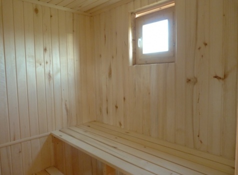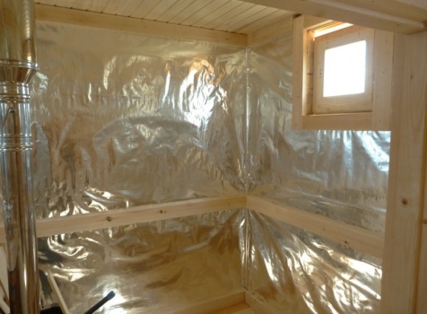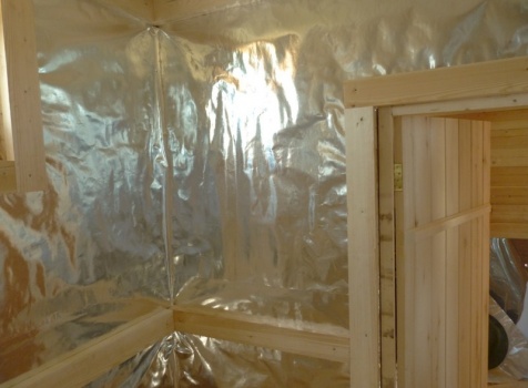 • В парной стены и потолок обшиты осиновой вагонкой с проложкой из фольги.