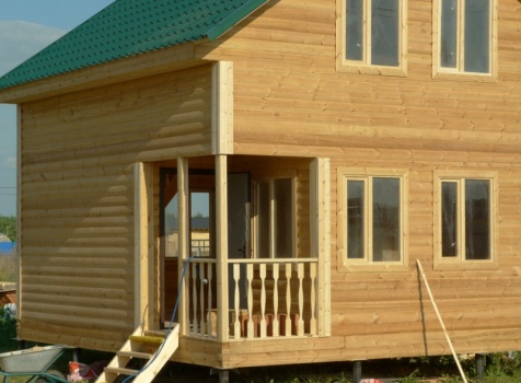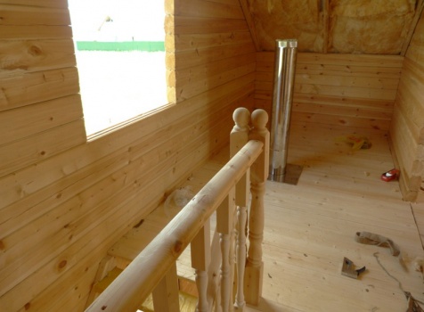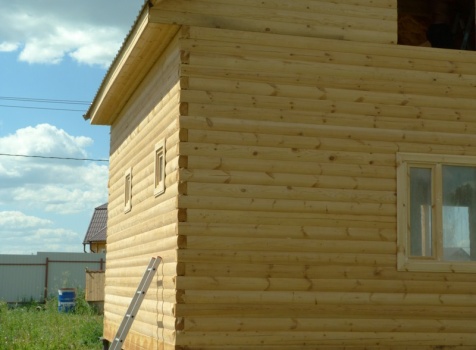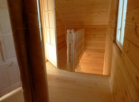 • Второй этаж: полутороэтажный 8 венцов, высотой 1.10 м., из профилированного бруса 100×150.
