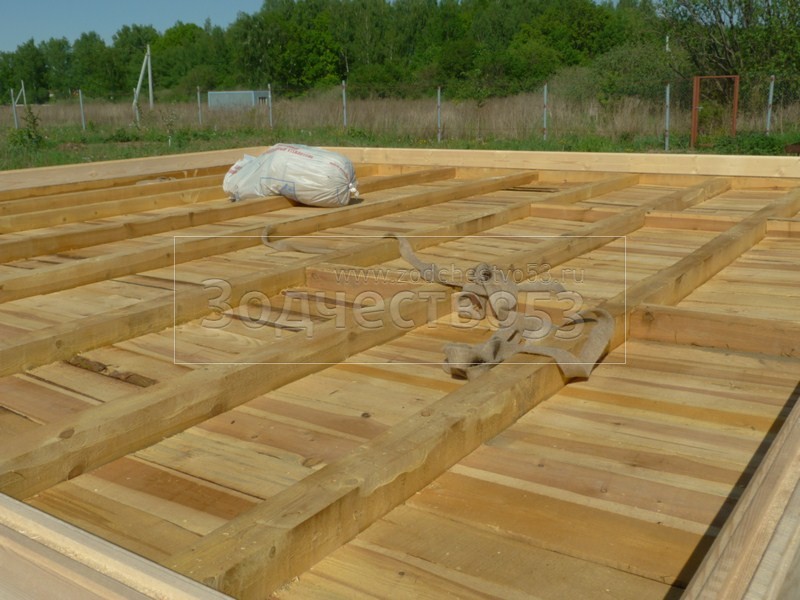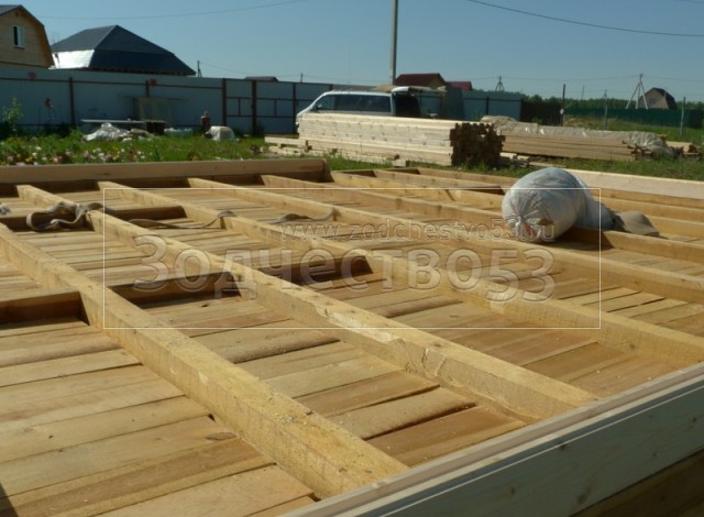 - Черновой пол первого этажа: 20×100 обрезная доска (обработана огнебиозащитой в подарок).