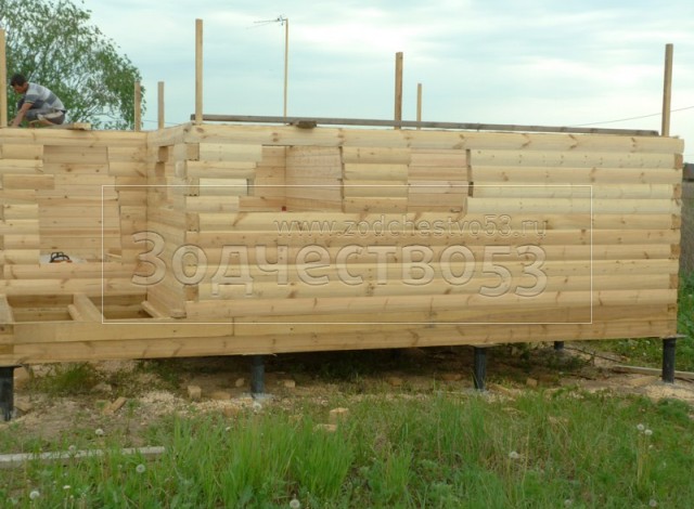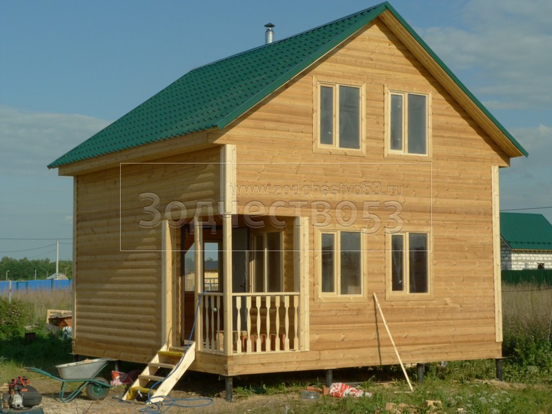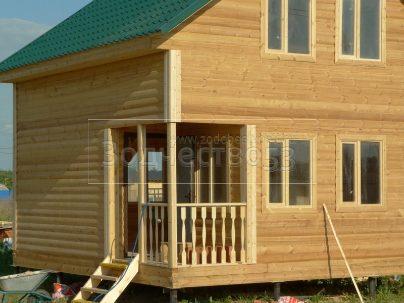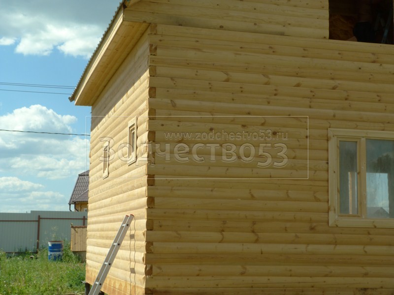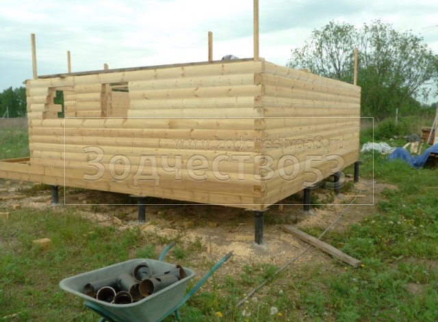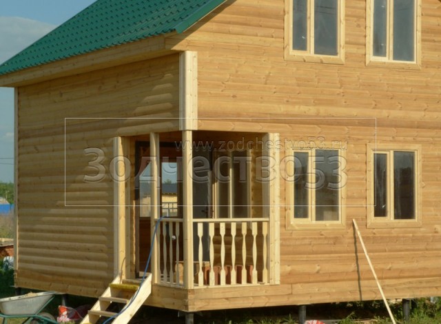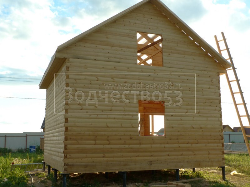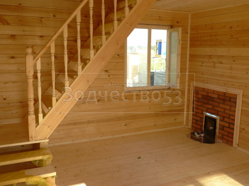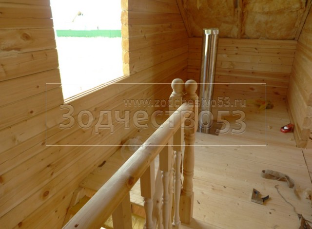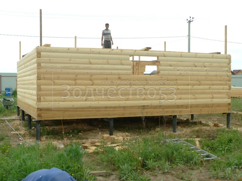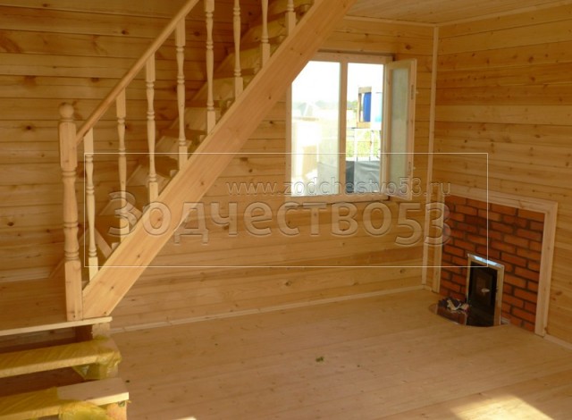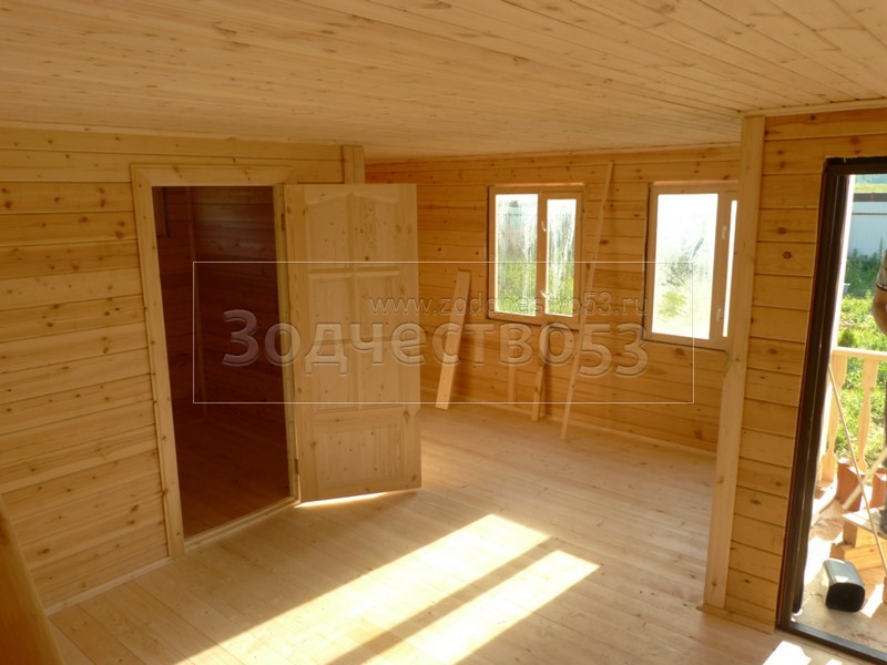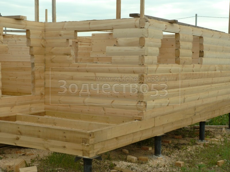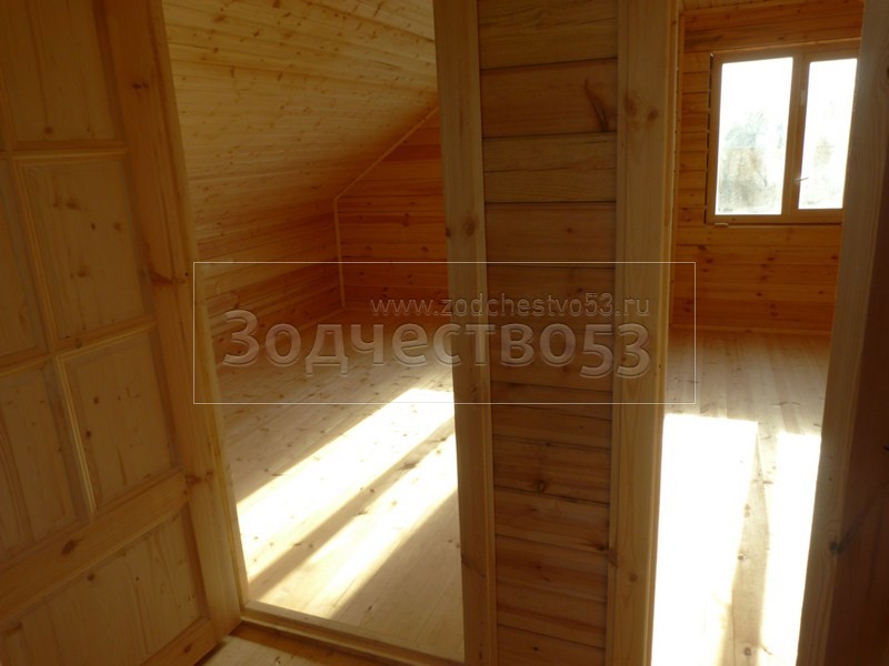 - Сборка на гвозди в тёплый угол с проложкой джутового полотна (размер по полу 6×6) с выгородкой комнат по высоте 2.3м.