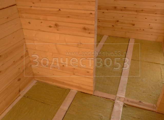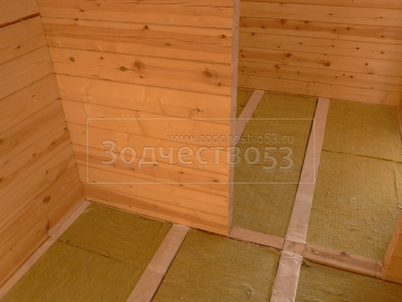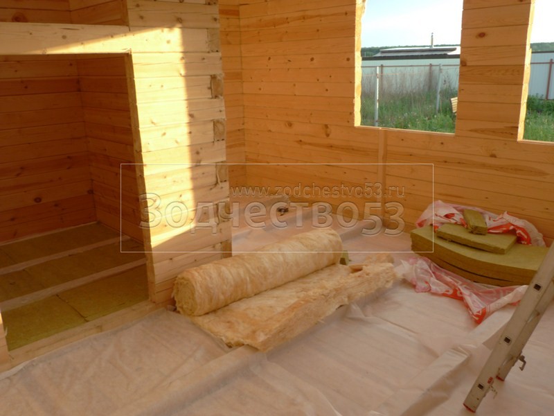 - Пол первого и второго этажа: 28 мм., шпунтованная доска с утеплением в 100мм (Изовер) с проложкой парогидроизоляции (утепление в 100мм в подарок!).