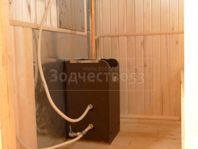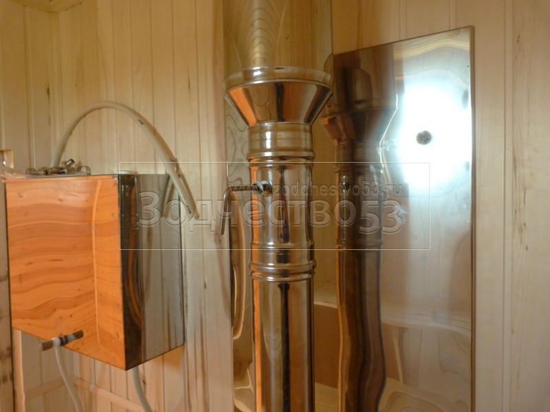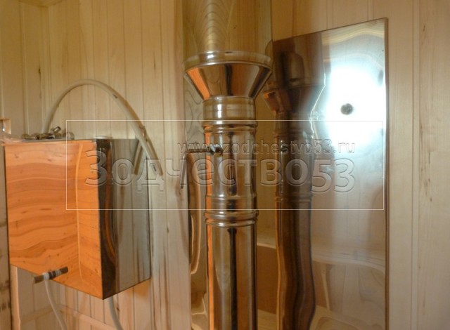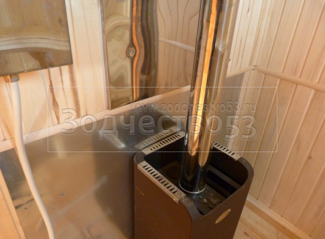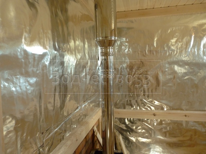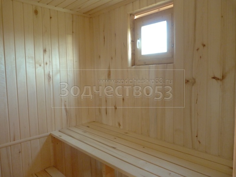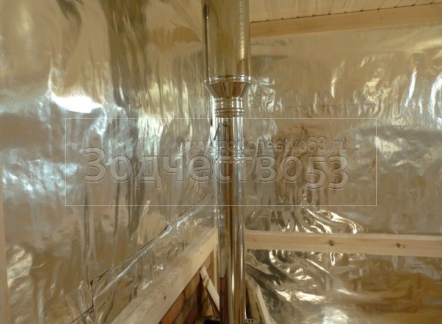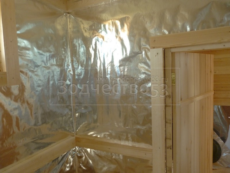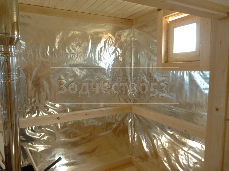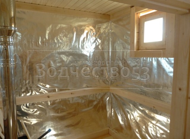 - В парной стены и потолок обшиты осиновой вагонкой с проложкой из фольги.