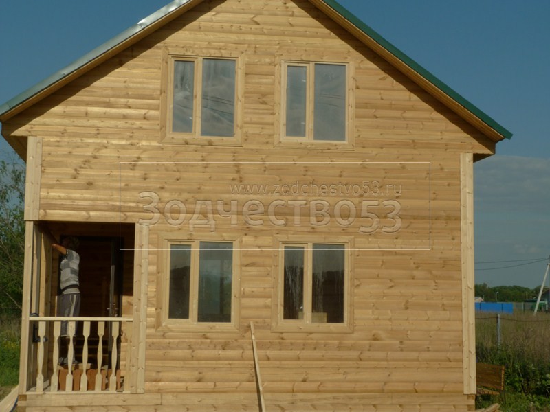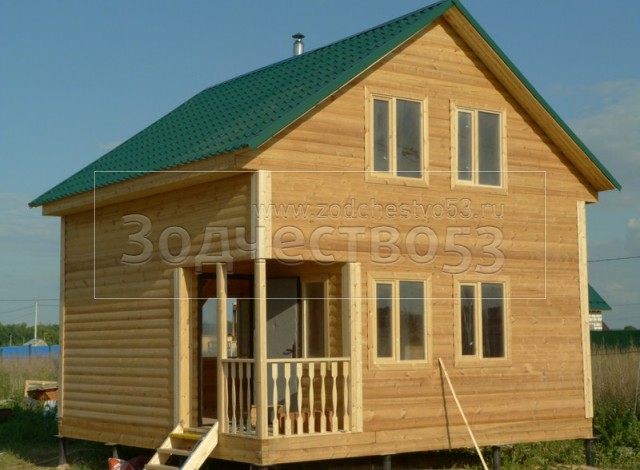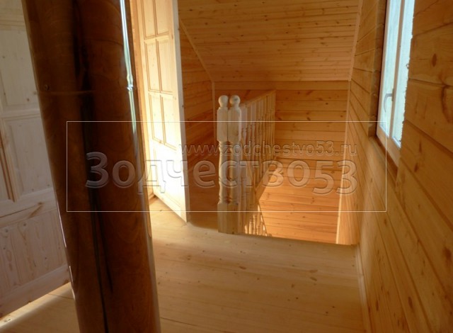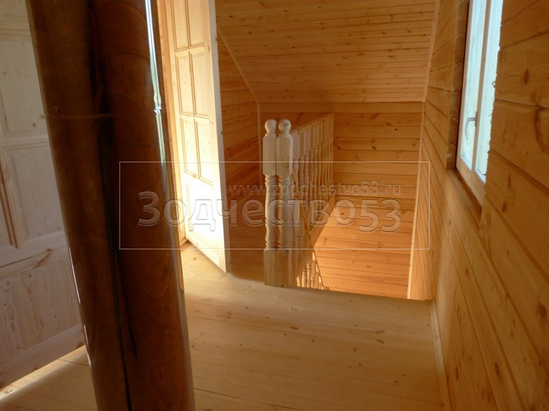 - Второй этаж: полутороэтажный 8 венцов, высотой 1.10 м., из профилированного бруса 100×150.