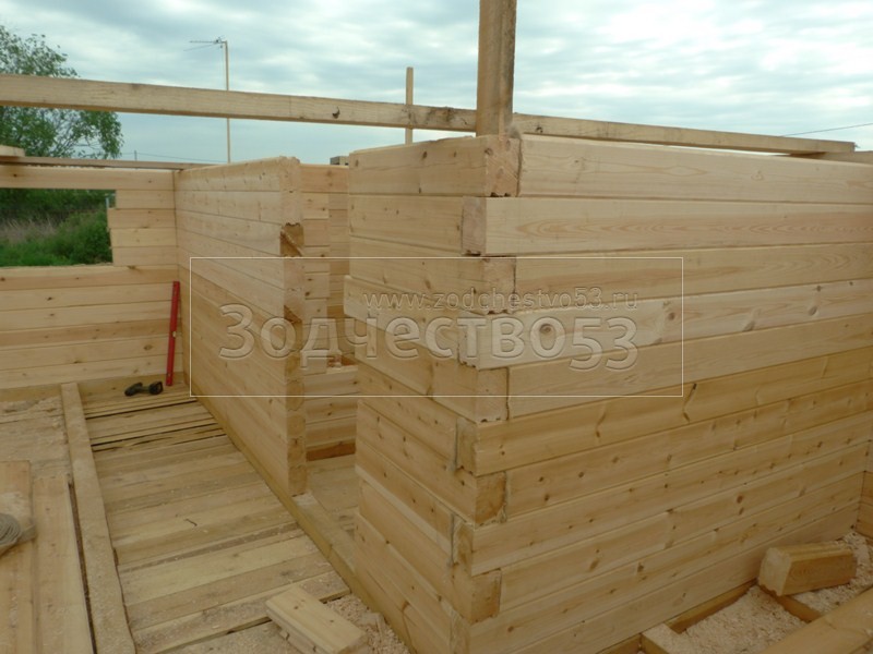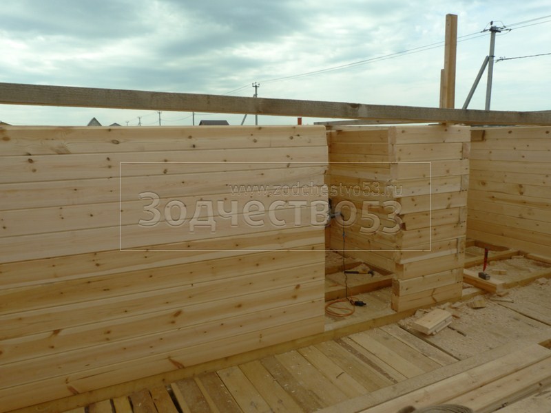 - Фронтоны из профилированного бруса 100×150 сборка на гвозди в тёплый угол.