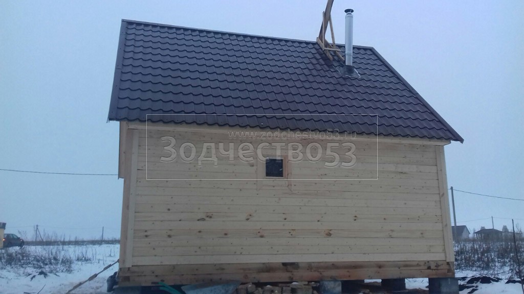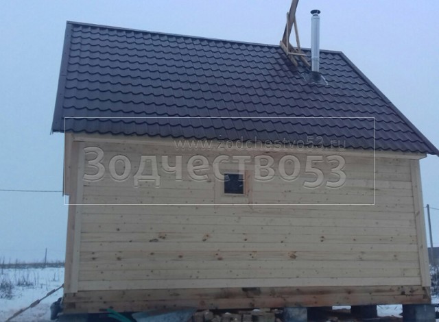 Баня 6×6 из профилированного бруса 150*150 под двухскатной крышей. Построена: Липецкая область, д. Яковлевка.