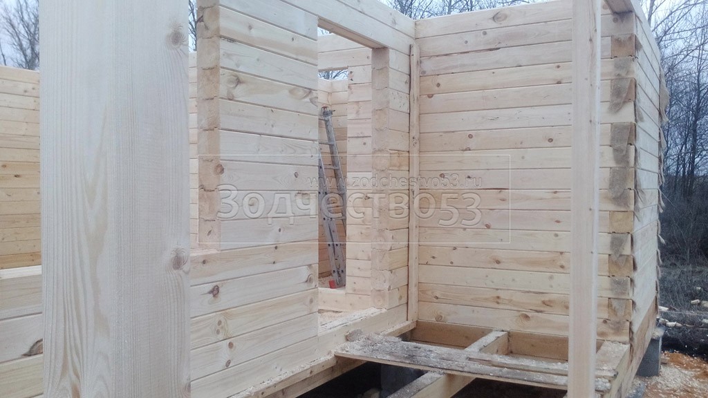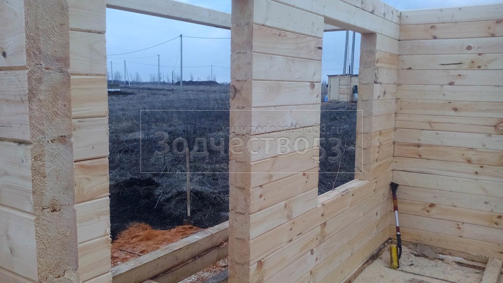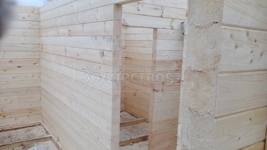 - Перегородки :профилированный брус 100×150 сборка на нагеля в тёплый угол.