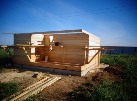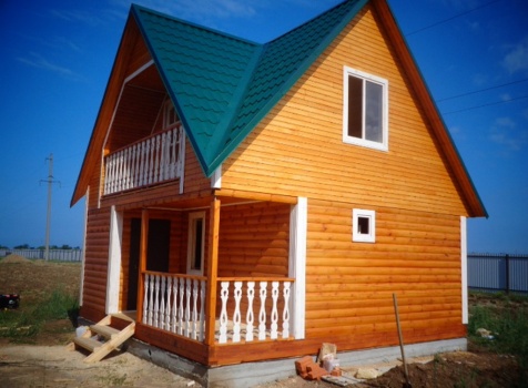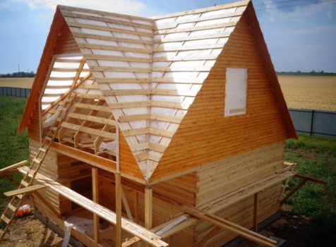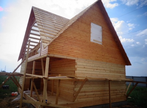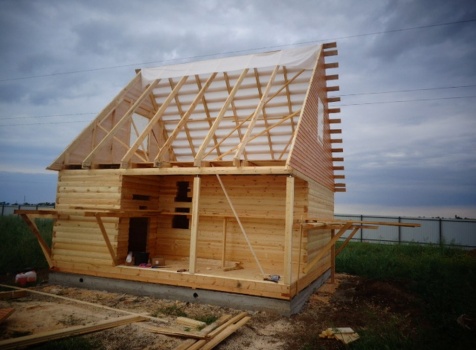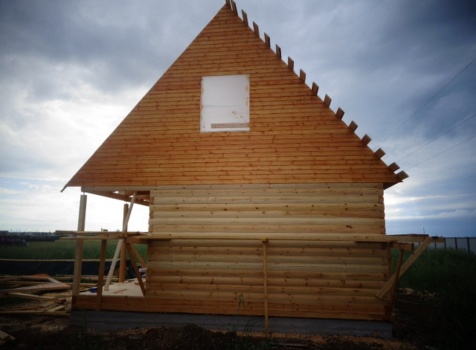 Баня 6,0×6,0 из профилированного бруса 100×150 под двухскатной крышей с тремя каркасно-щитовыми фронтонами. Построена в респ.Крым, Бахчисарайский
