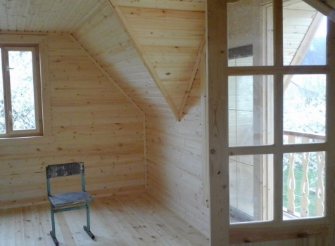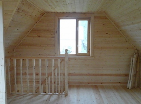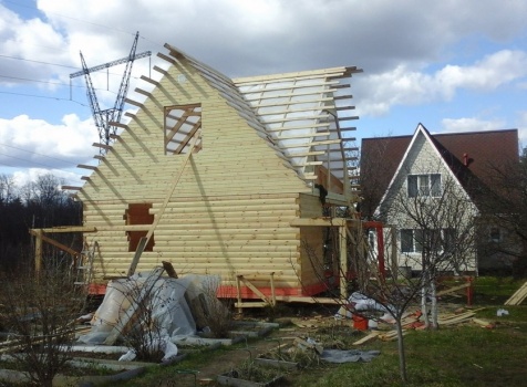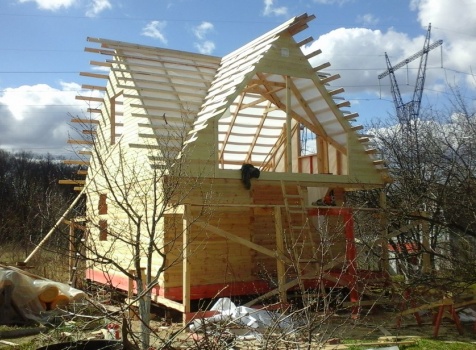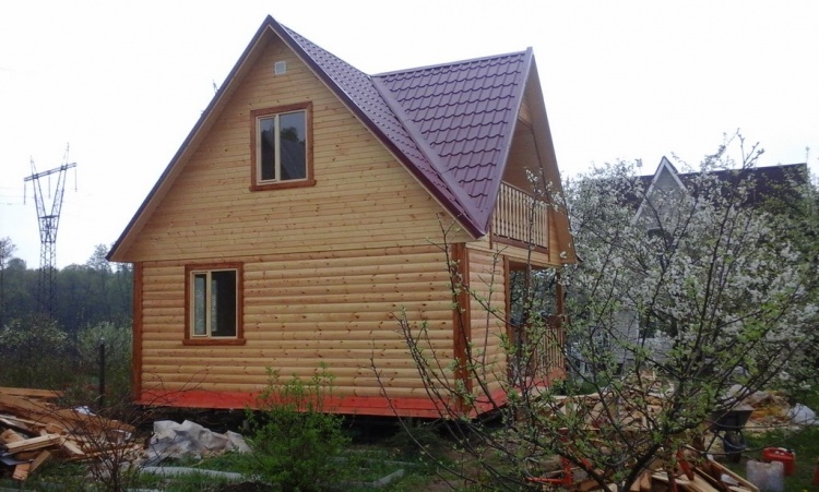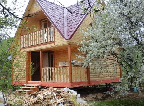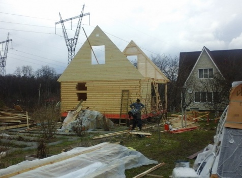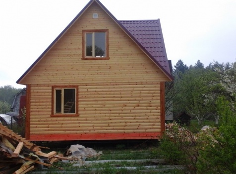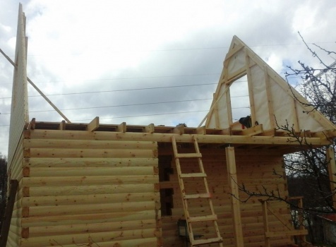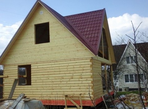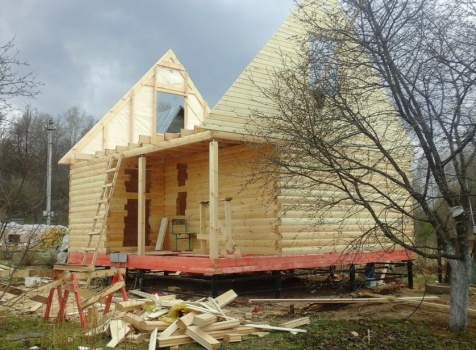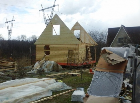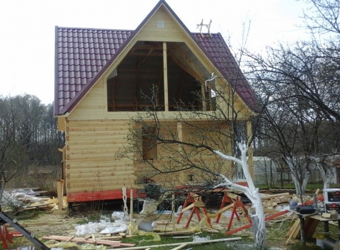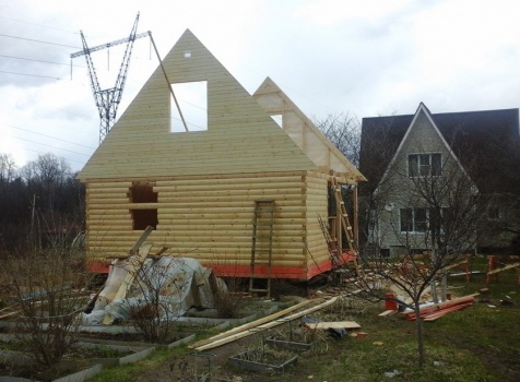 Баня 6×6 м. из профилированного бруса 100×150 под двухскатной крышей с тремя фронтонами построена в Калужской области, г. Тарусса.