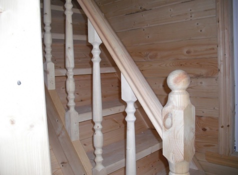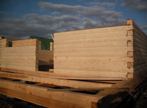Стены первого этажа: сухой профилированный брус 150×150, высотой 2.40, 18 венцов.