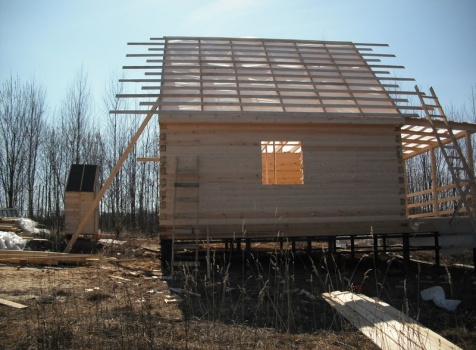 Стропильная система: межэтажные перекрытия 40×150 через 50 см., стропила 40×150 через 1 метр, выгородка комнат 40×100.