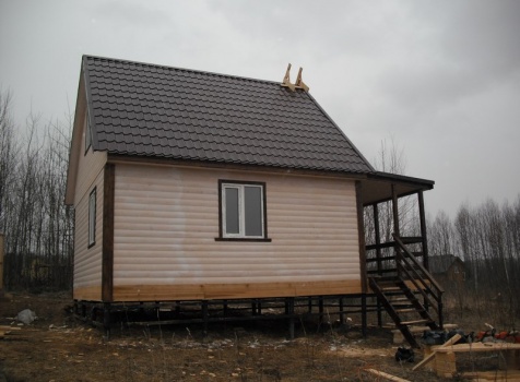 Фронтоны каркасно-щитовые, высотой 3.0 метра, обшиты вагонкой класса «В» 16 мм.