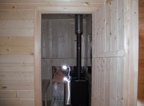 Печь Ермак 12 «Элит» со стеклом, с сэнвич трубами, с обложкой печи из кирпича.