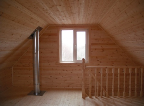 Второй этаж размерами 4.5×6, каркасно-щитовой, обшит вагонкой класса «В» 16 мм., с утеплением в 150 мм. (Урса) с проложкой парогидроизоляции в два слоя.