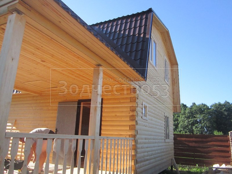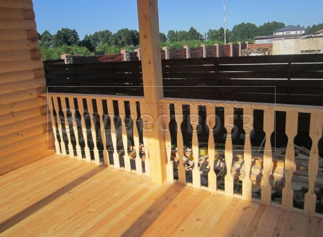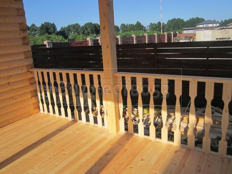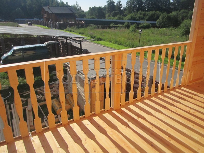 • Терраса 4×4 м., открытая с резными балясинами, с установкой усадочных болтов.