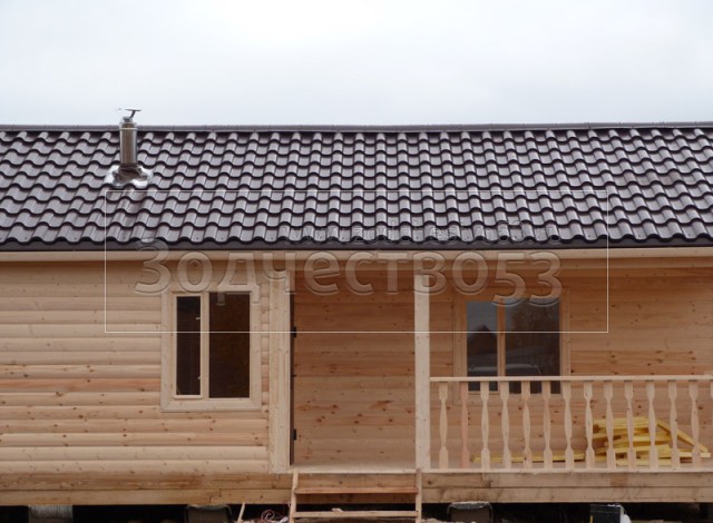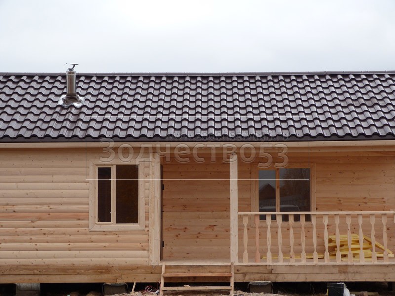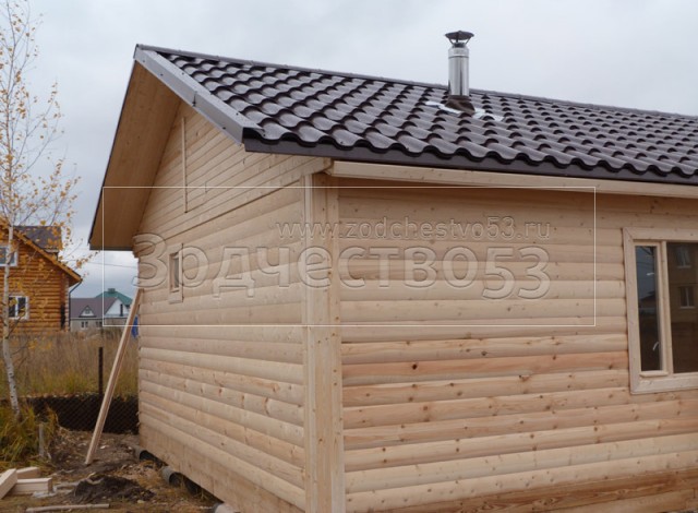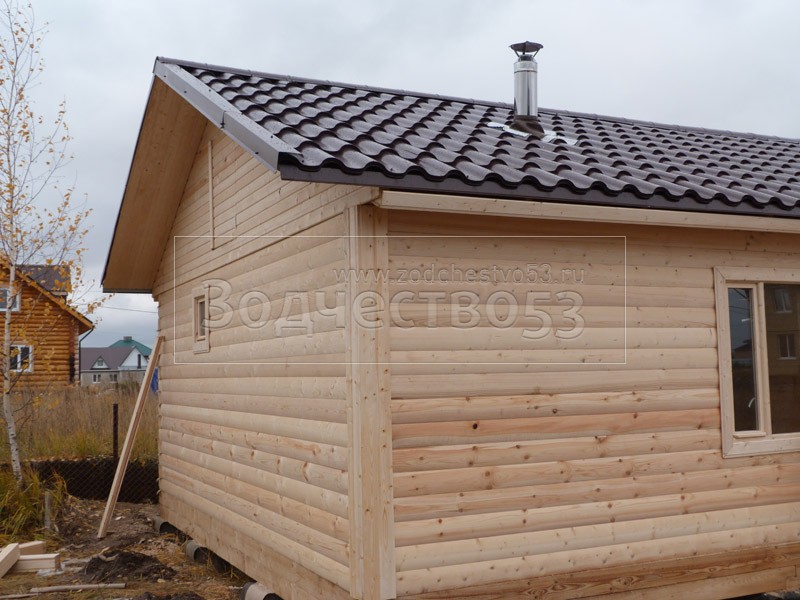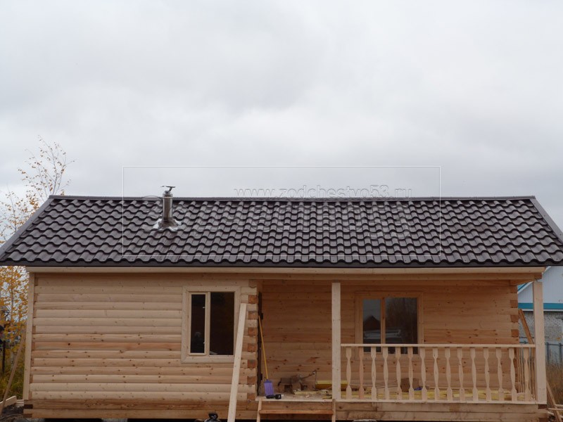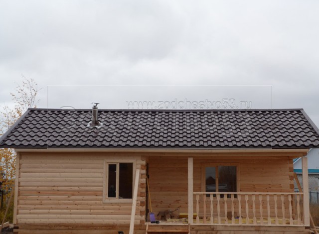• Крыша бани двухскатная, покрыта металочерепицей с проложкой парогидроизоляции (металочерепица заказчика).