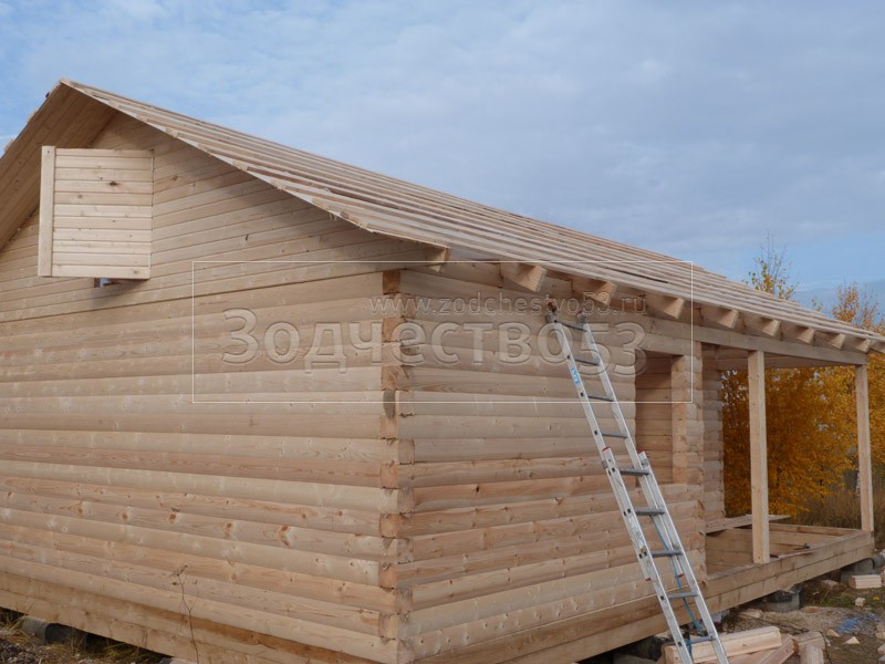 • Фронтоны каркасно-щитовые, высотой 1.5 метра, обшиты вагонкой.